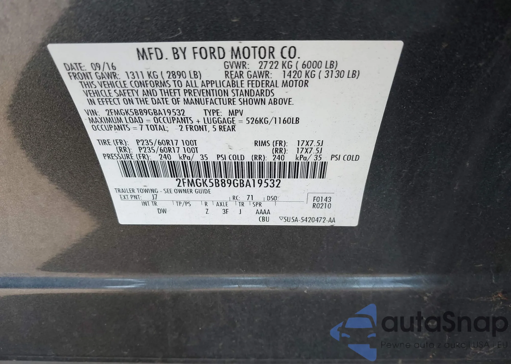 • VIN 2FMGK5B89GBA19532