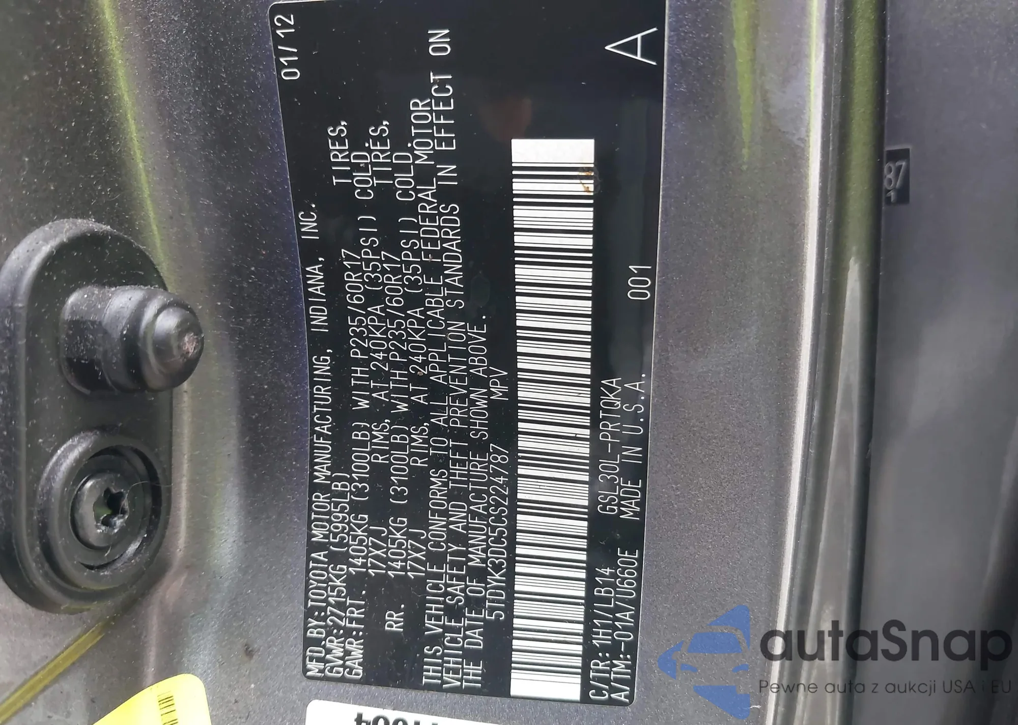 • VIN 5TDYK3DC5CS224787