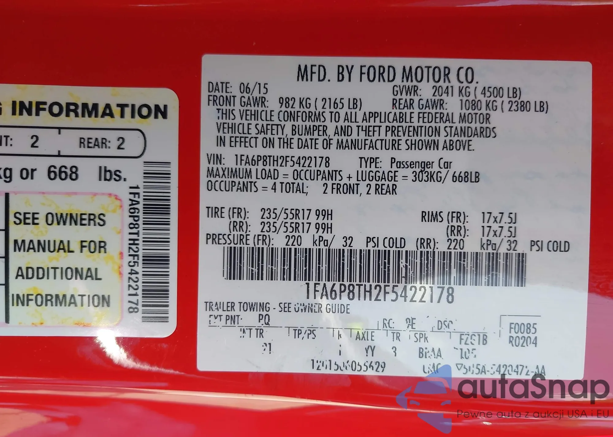 • VIN 1FA6P8TH2F5422178