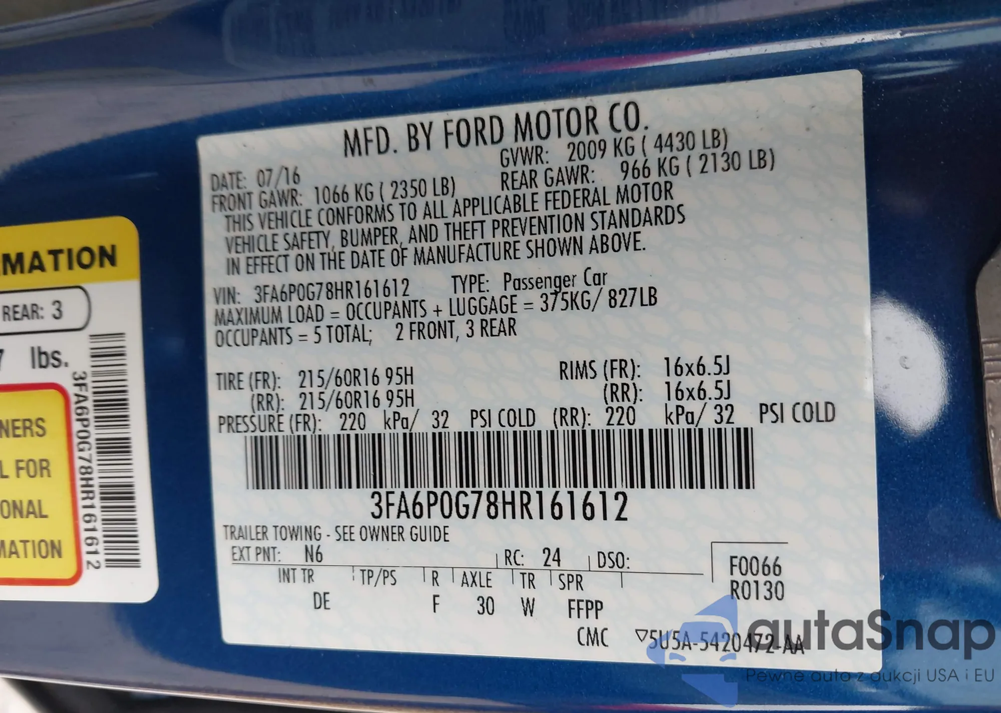 • VIN 3FA6P0G78HR161612