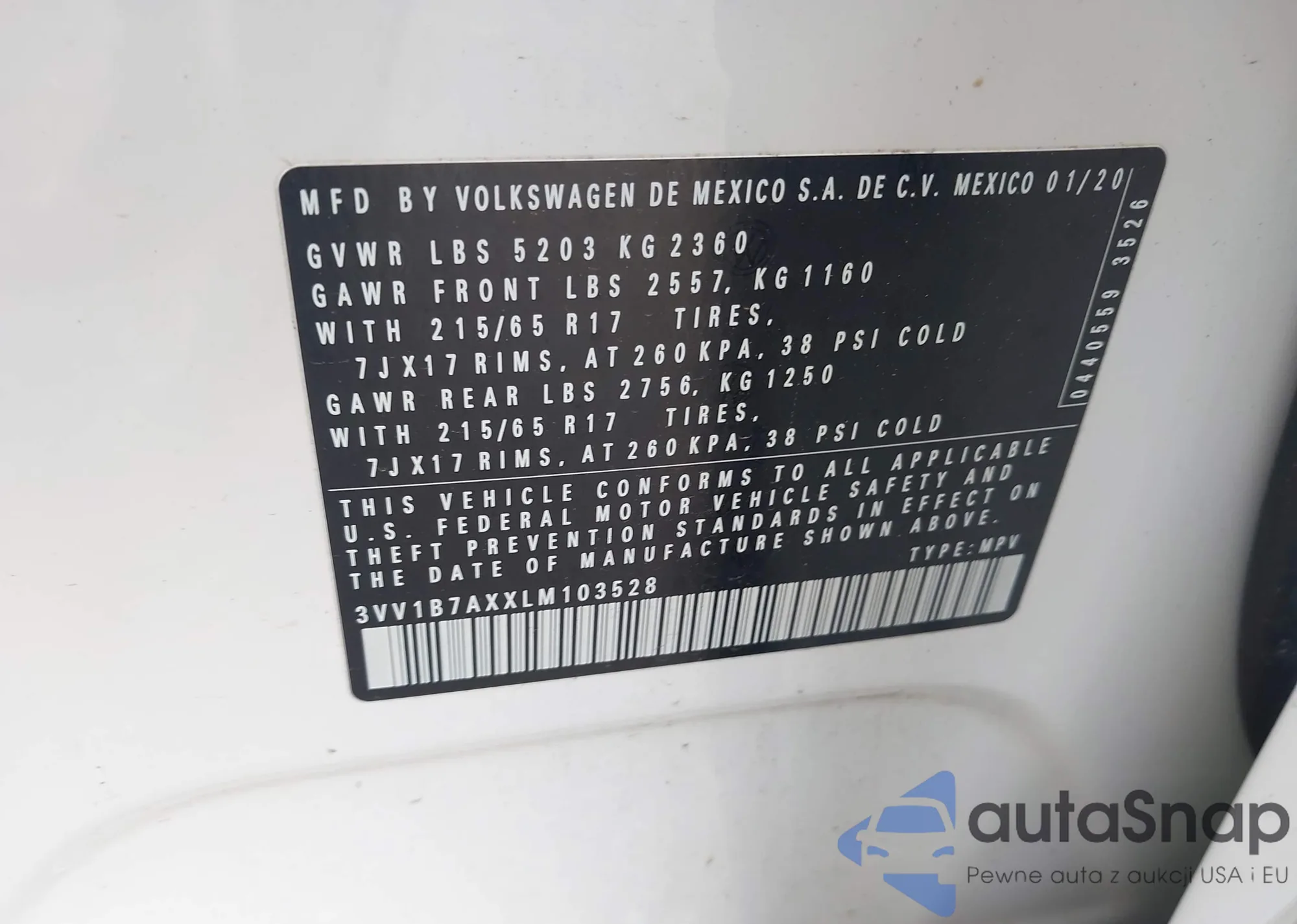 • VIN 3VV1B7AXXLM103528