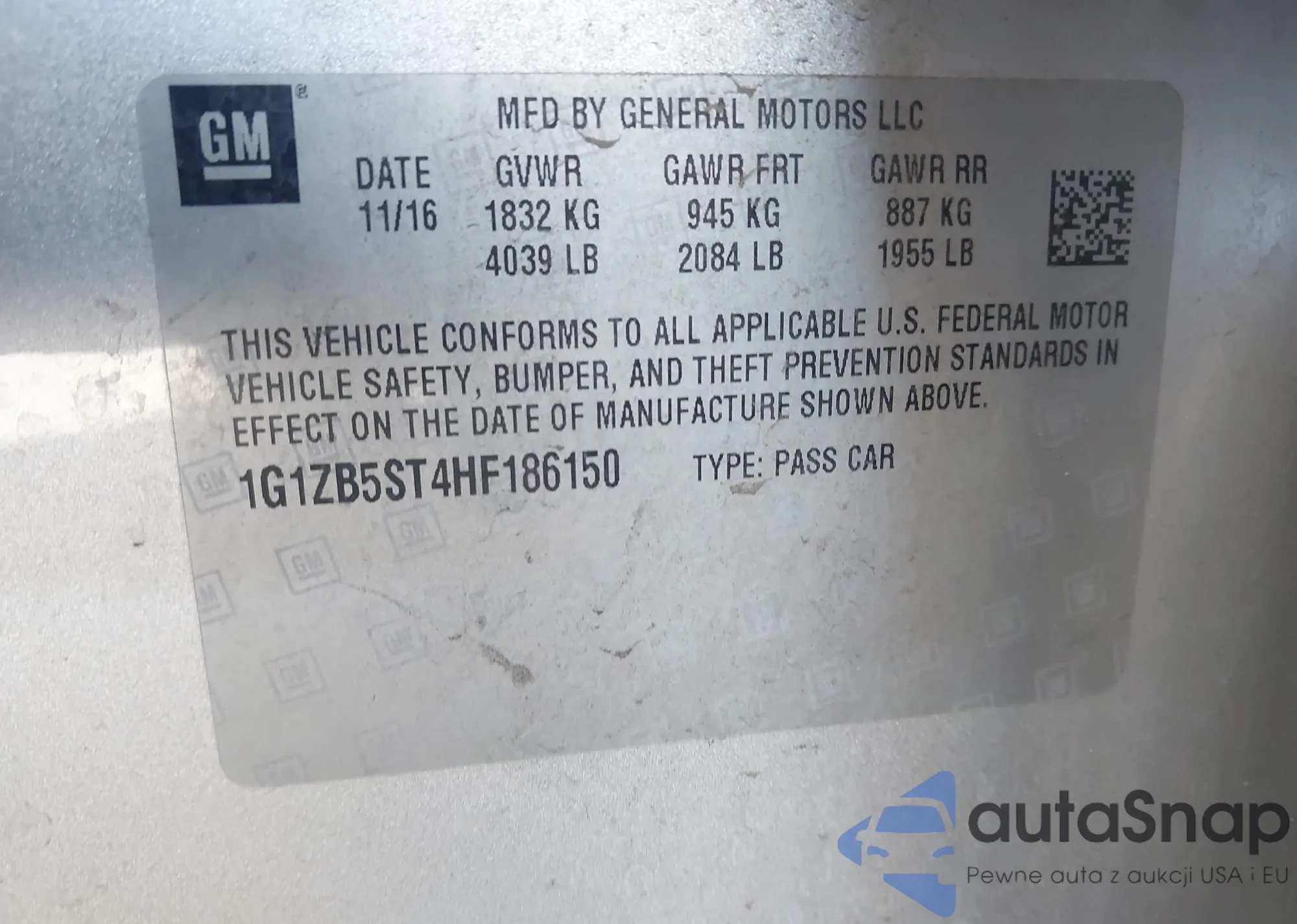 • VIN 1G1ZB5ST4HF186150