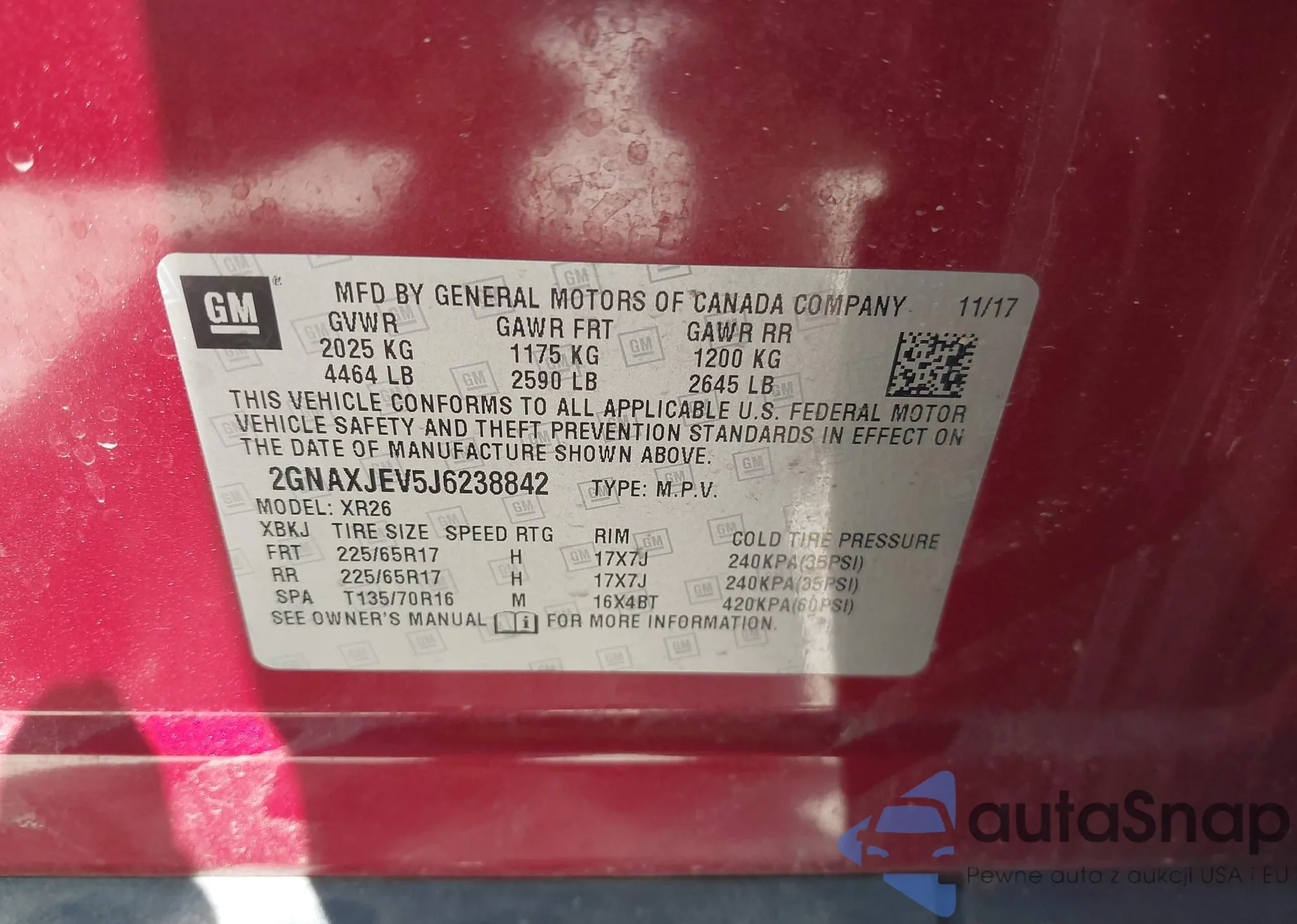 LOT: 42504300 VIN: 2GNAXJEV5J6238842