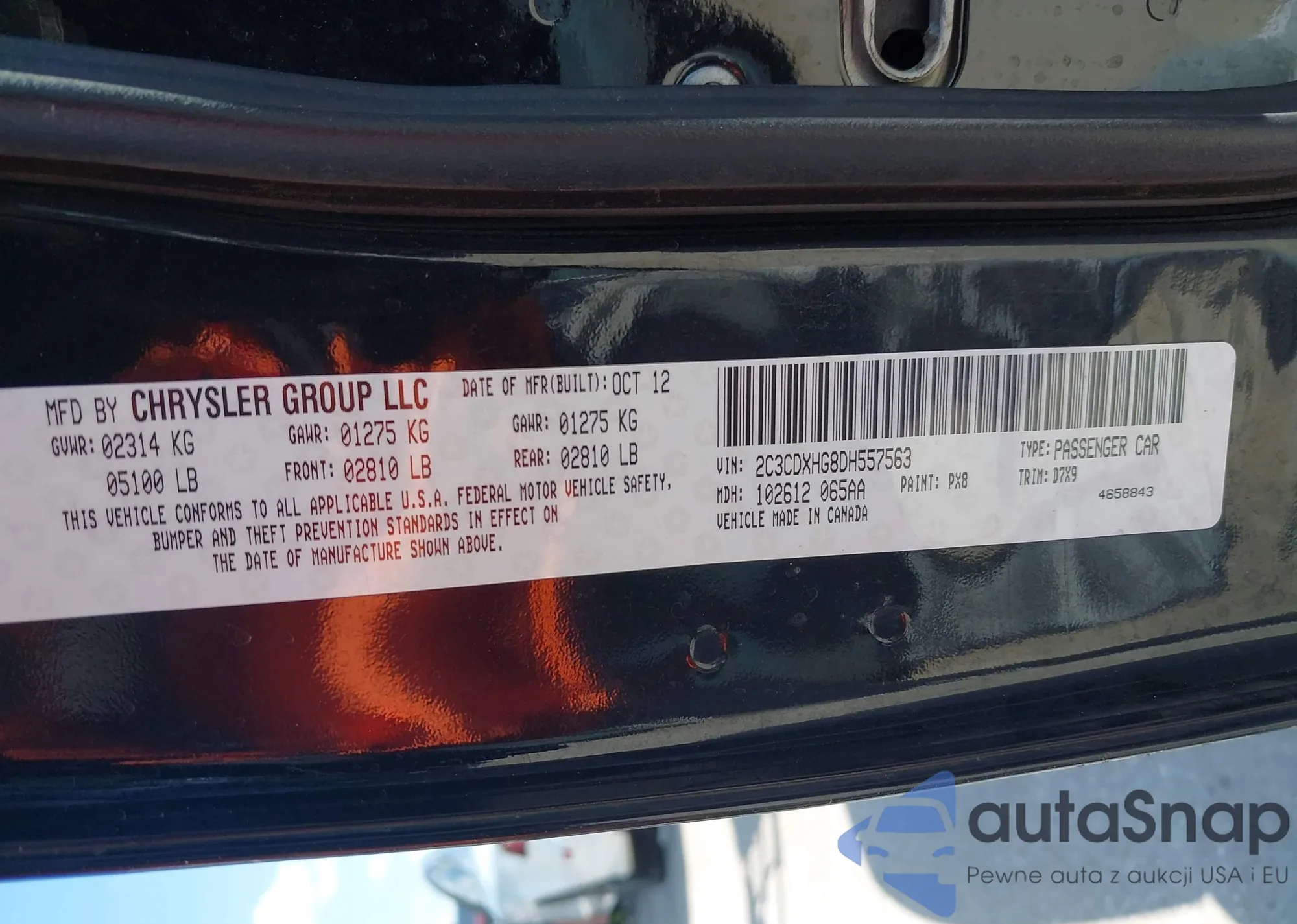 • VIN 2C3CDXHG8DH557563