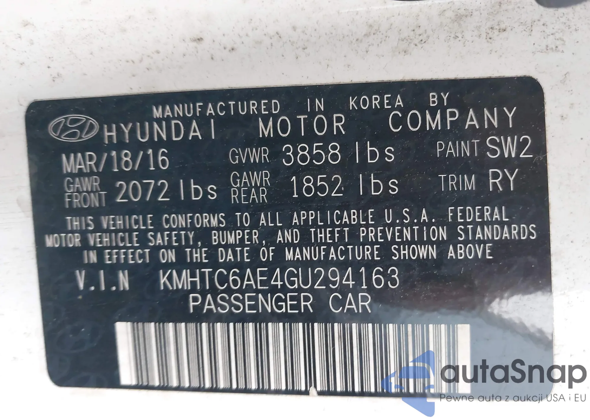 • VIN KMHTC6AE4GU294163