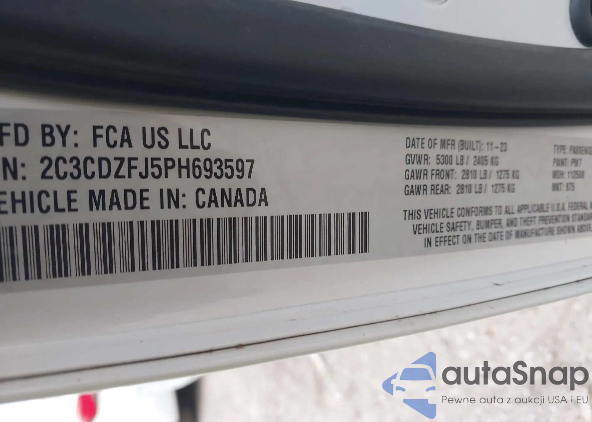 • VIN 2C3CDZFJ5PH693597