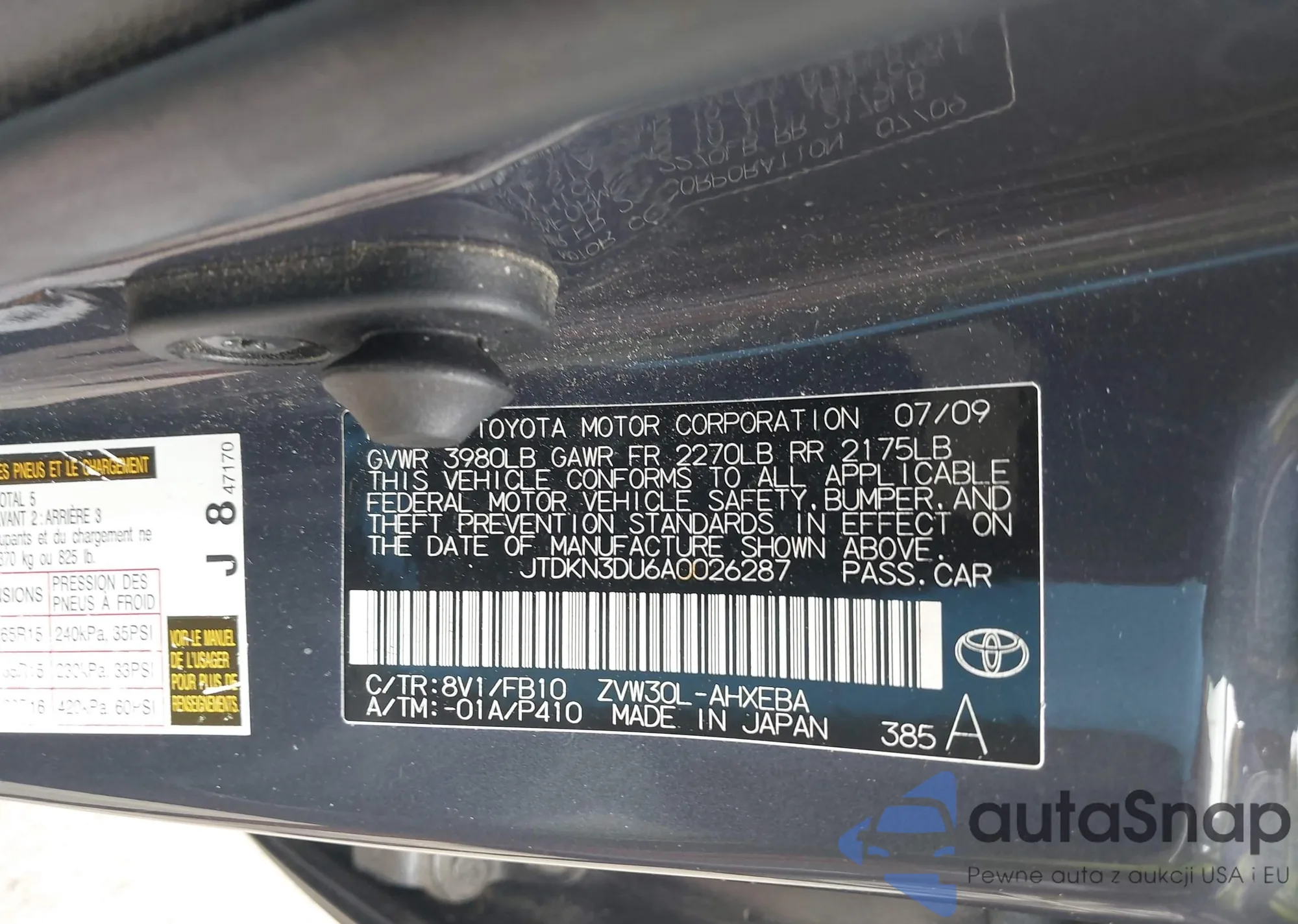 • VIN JTDKN3DU6A0026287