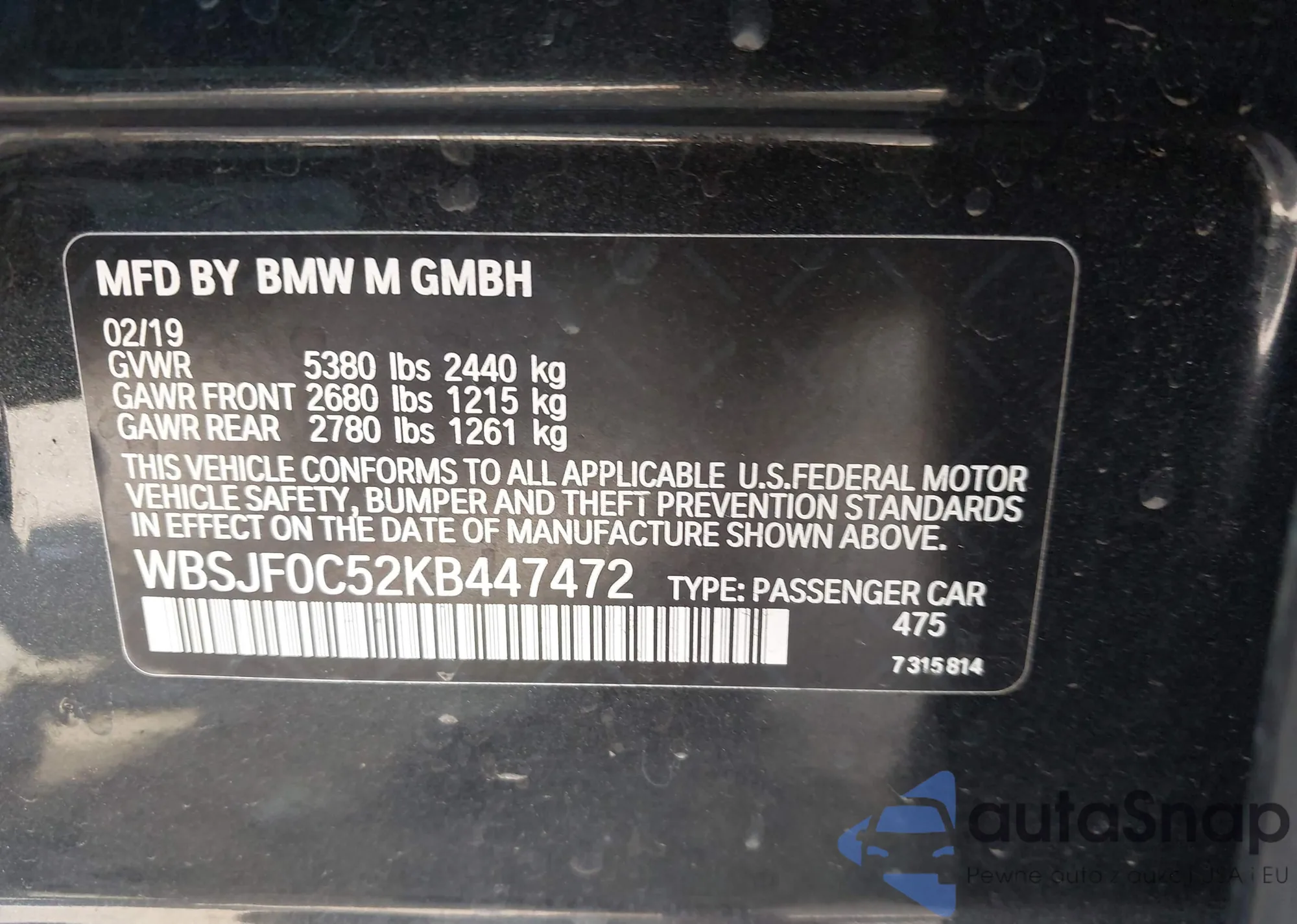 • VIN WBSJF0C52KB447472
