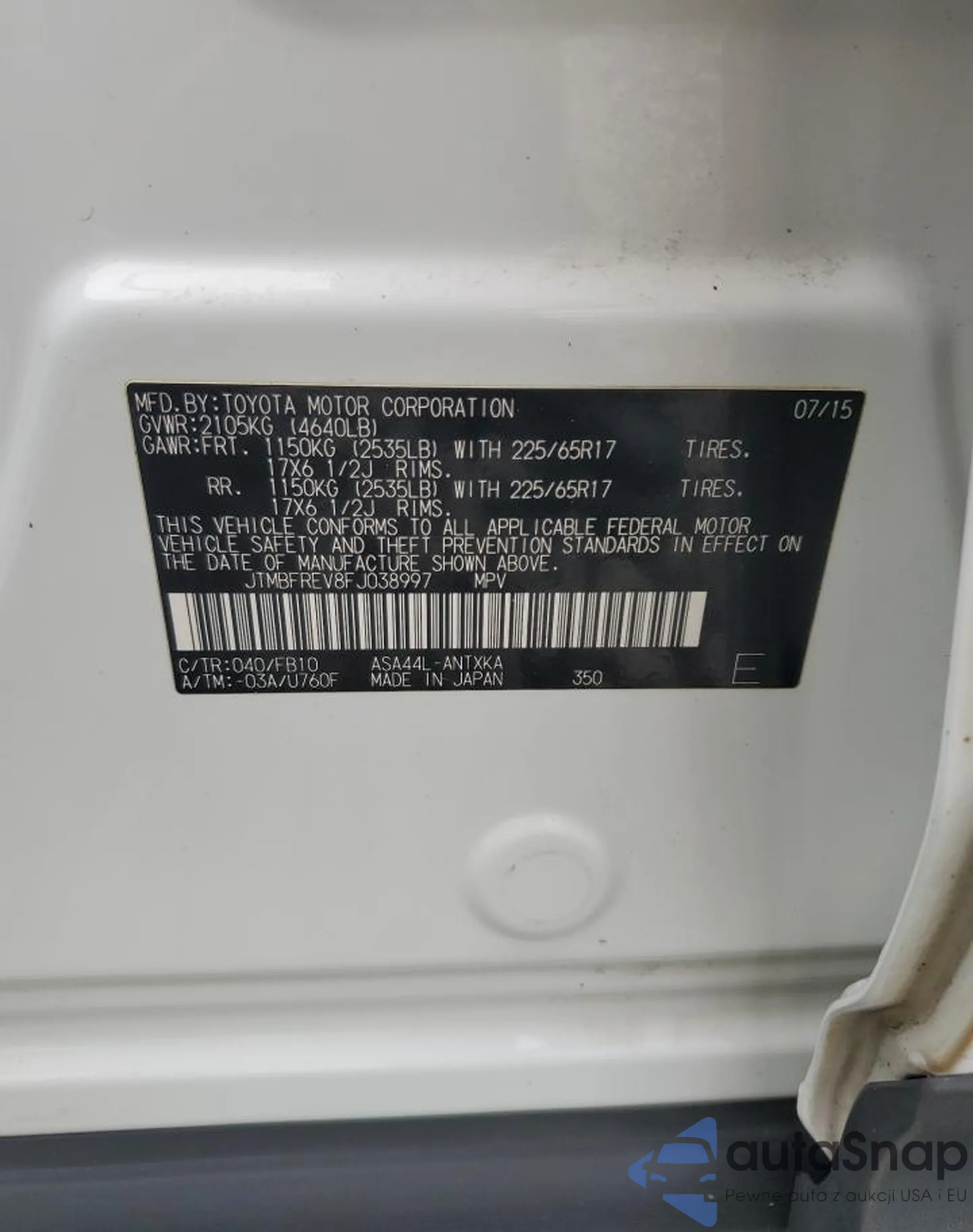 LOT: 60021675 VIN: KL4CJASB4FB227763