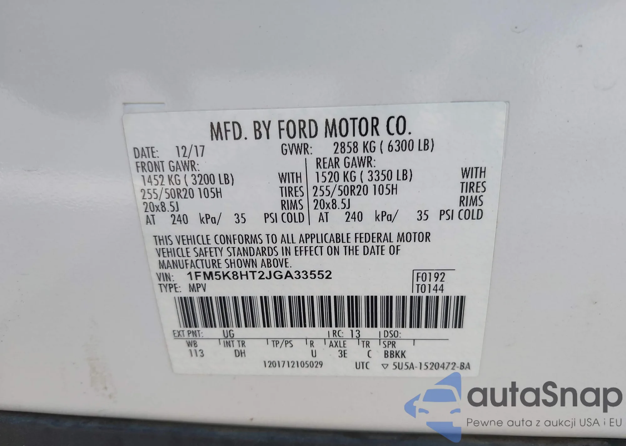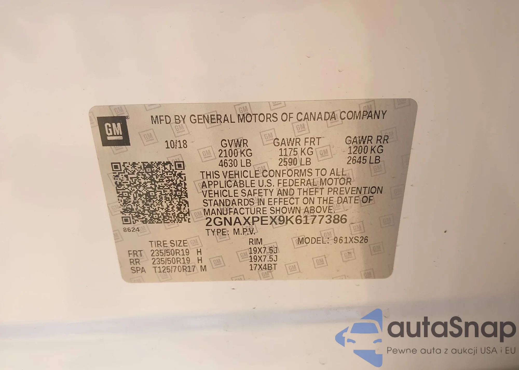 LOT: 42172103 VIN: 2GNAXPEX9K6177386