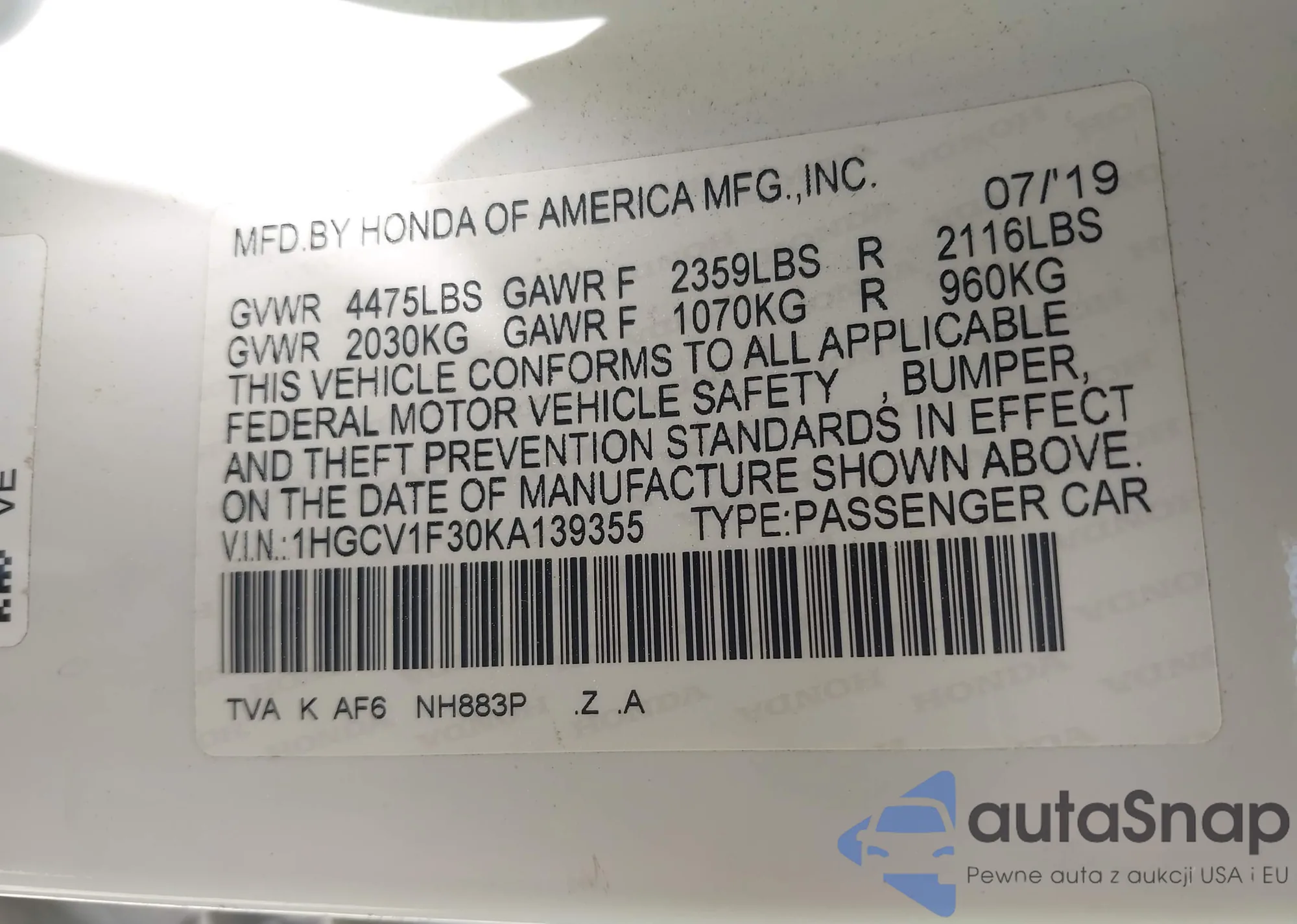 LOT: 42195910 VIN: 2HGFB2F56EH553016