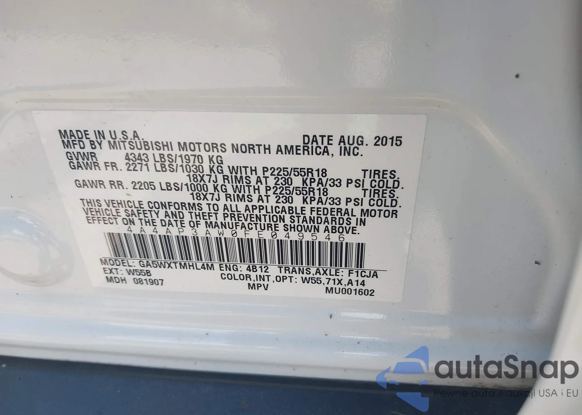 • VIN 4A4AP3AW0FE049546