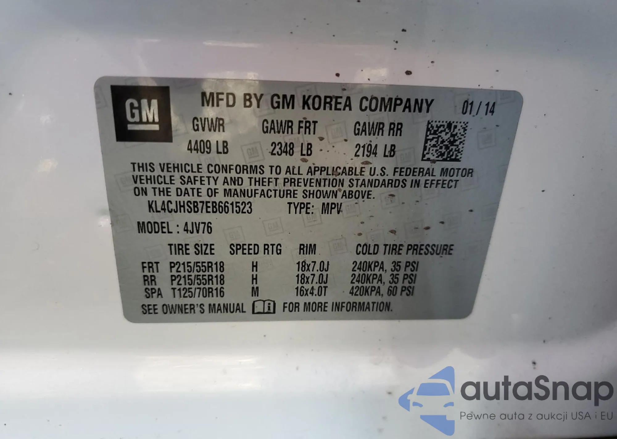 • VIN KL4CJHSB7EB661523