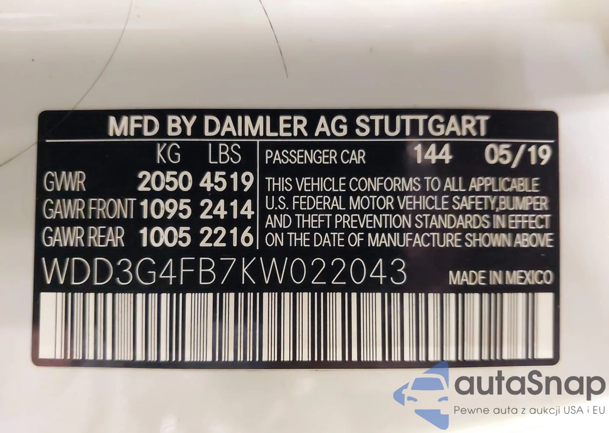 • VIN WDD3G4FB7KW022043