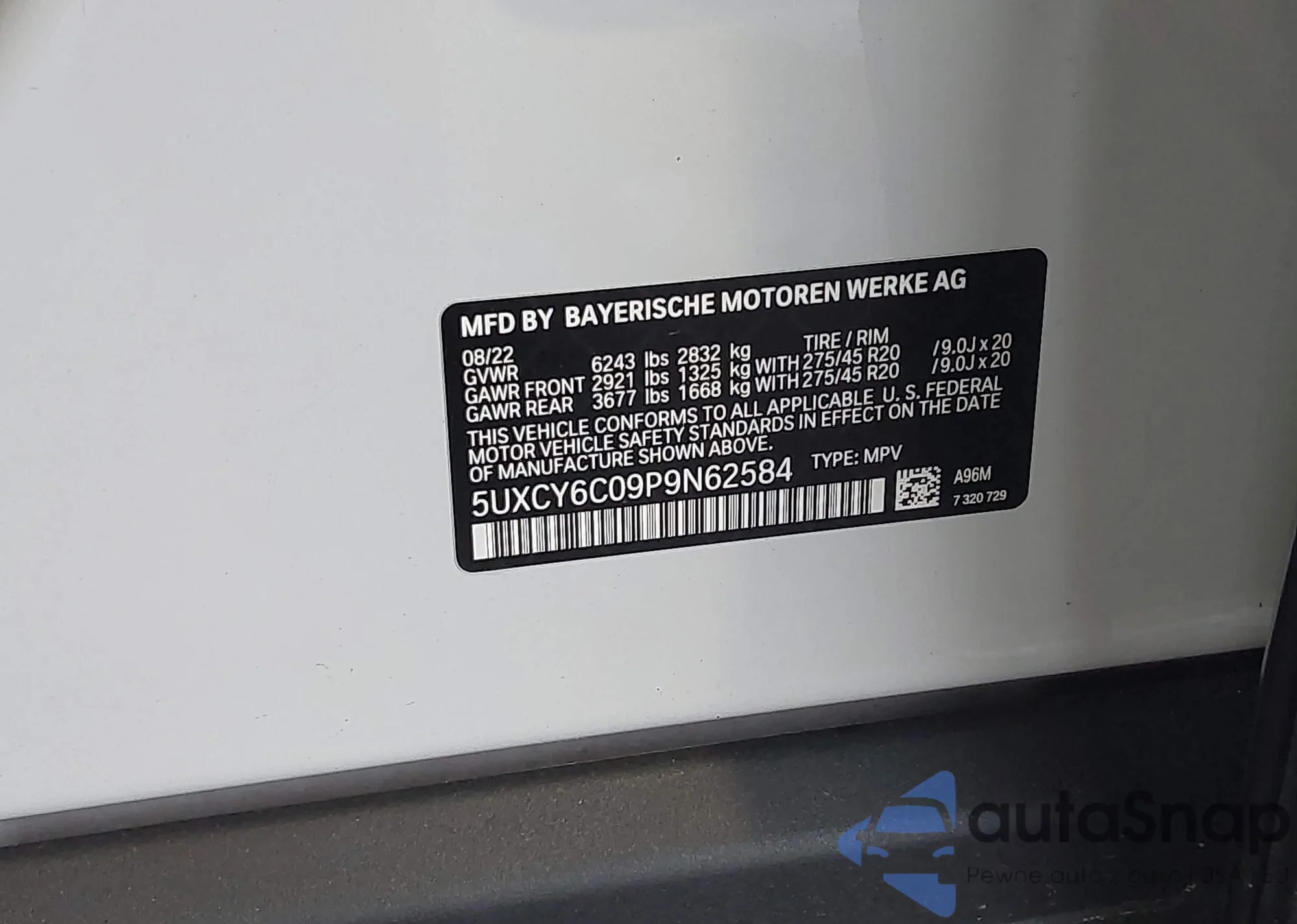 LOT: 42186679 VIN: 5UXCY6C09P9N62584