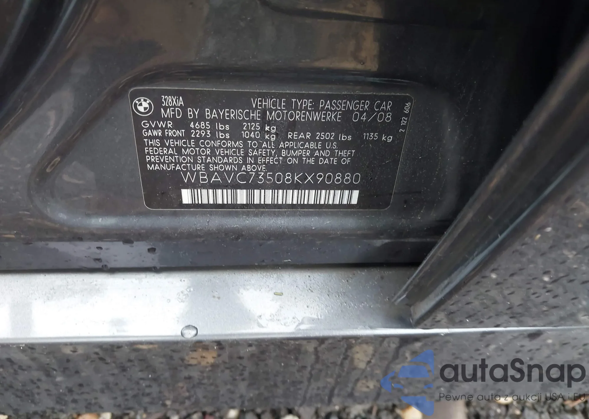 • VIN WBAVC73508KX90880