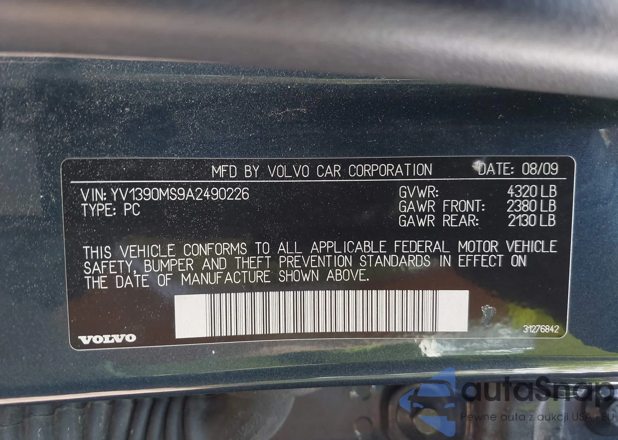 LOT: 42234235 VIN: YV1390MS9A2490226