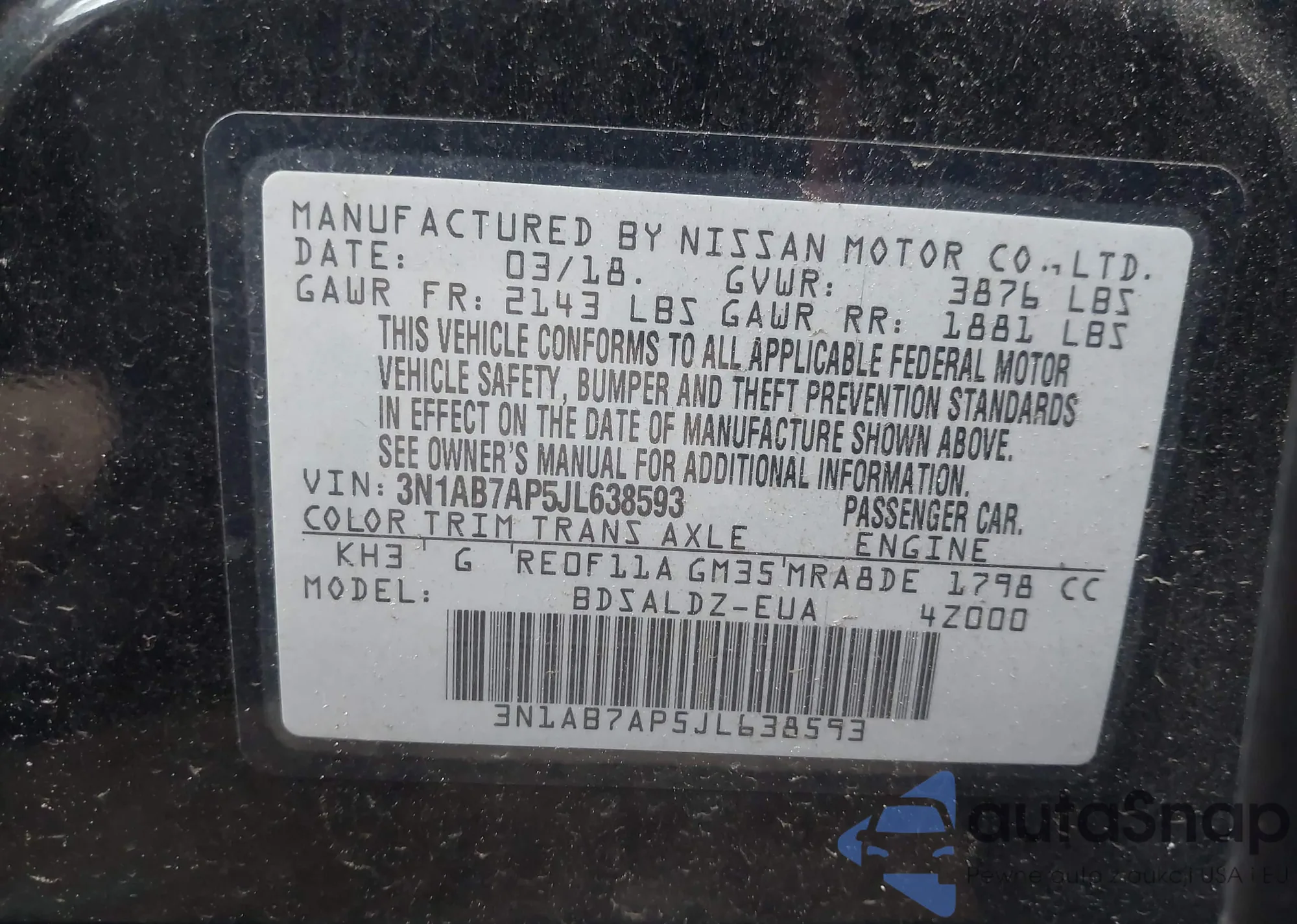 • VIN 3N1AB7AP5JL638593
