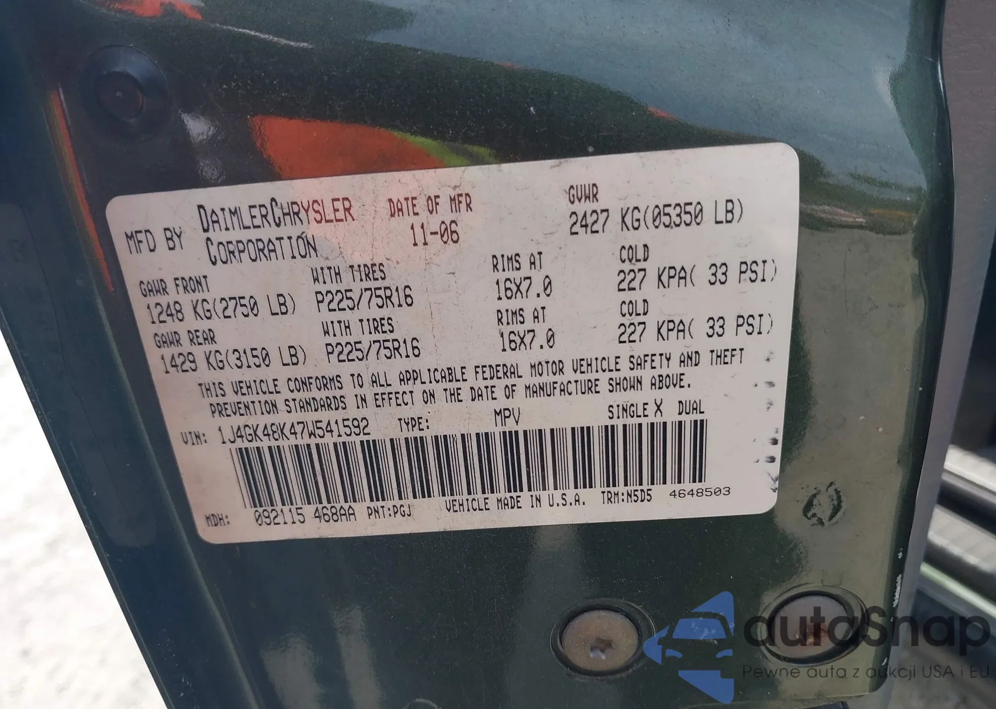 LOT: 42308506 VIN: 1J4GK48K47W541592
