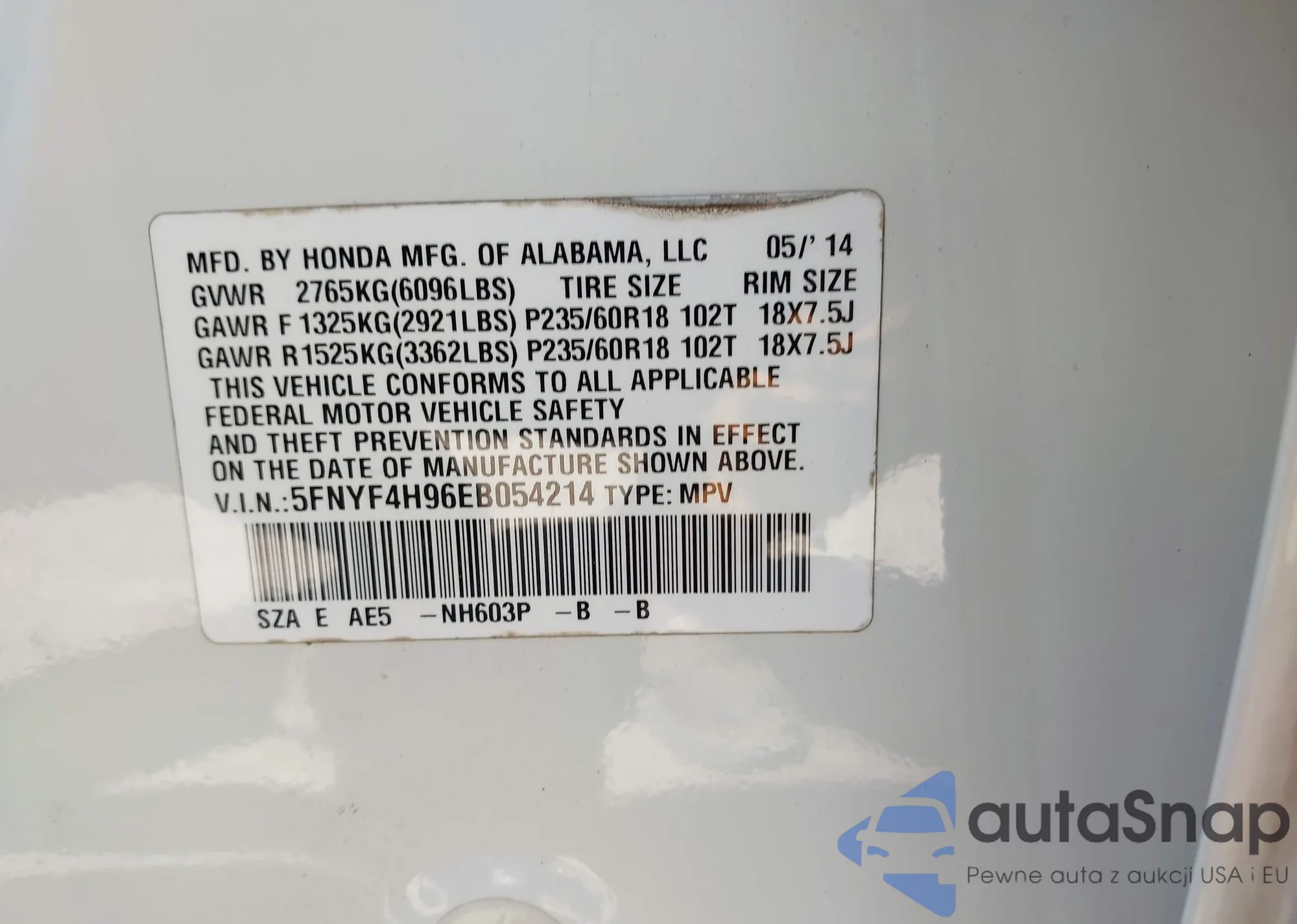 LOT: 42382900 VIN: 5FNRL38779B027745