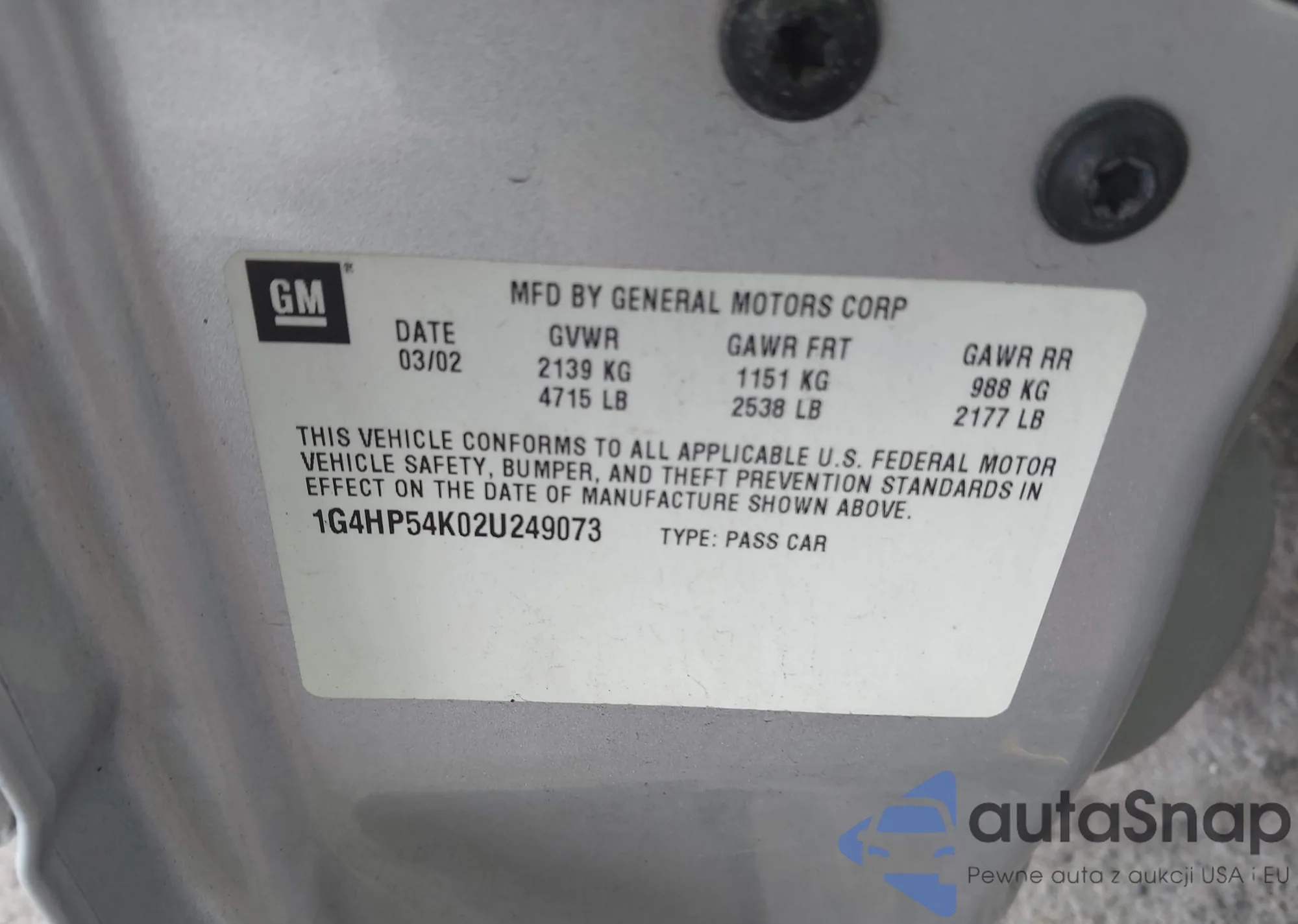 • VIN 1G4GF5G39FF211516