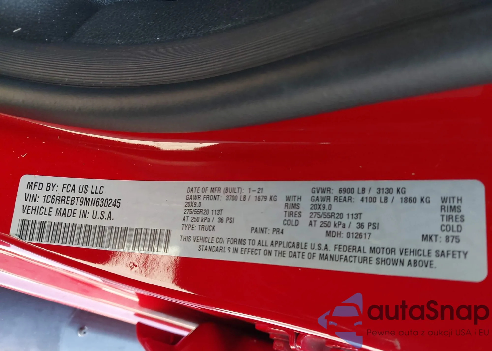 • VIN 1C6RREBT9MN630245