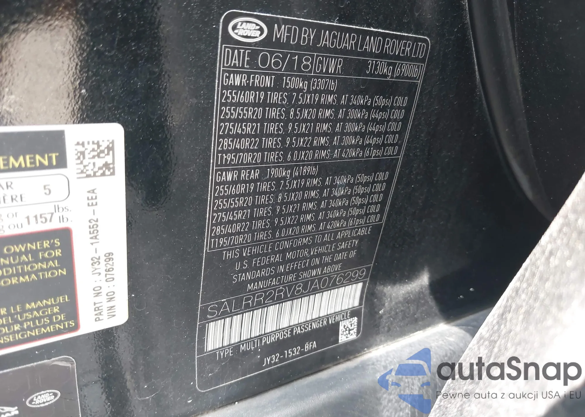 • VIN SALRR2RV8JA076299