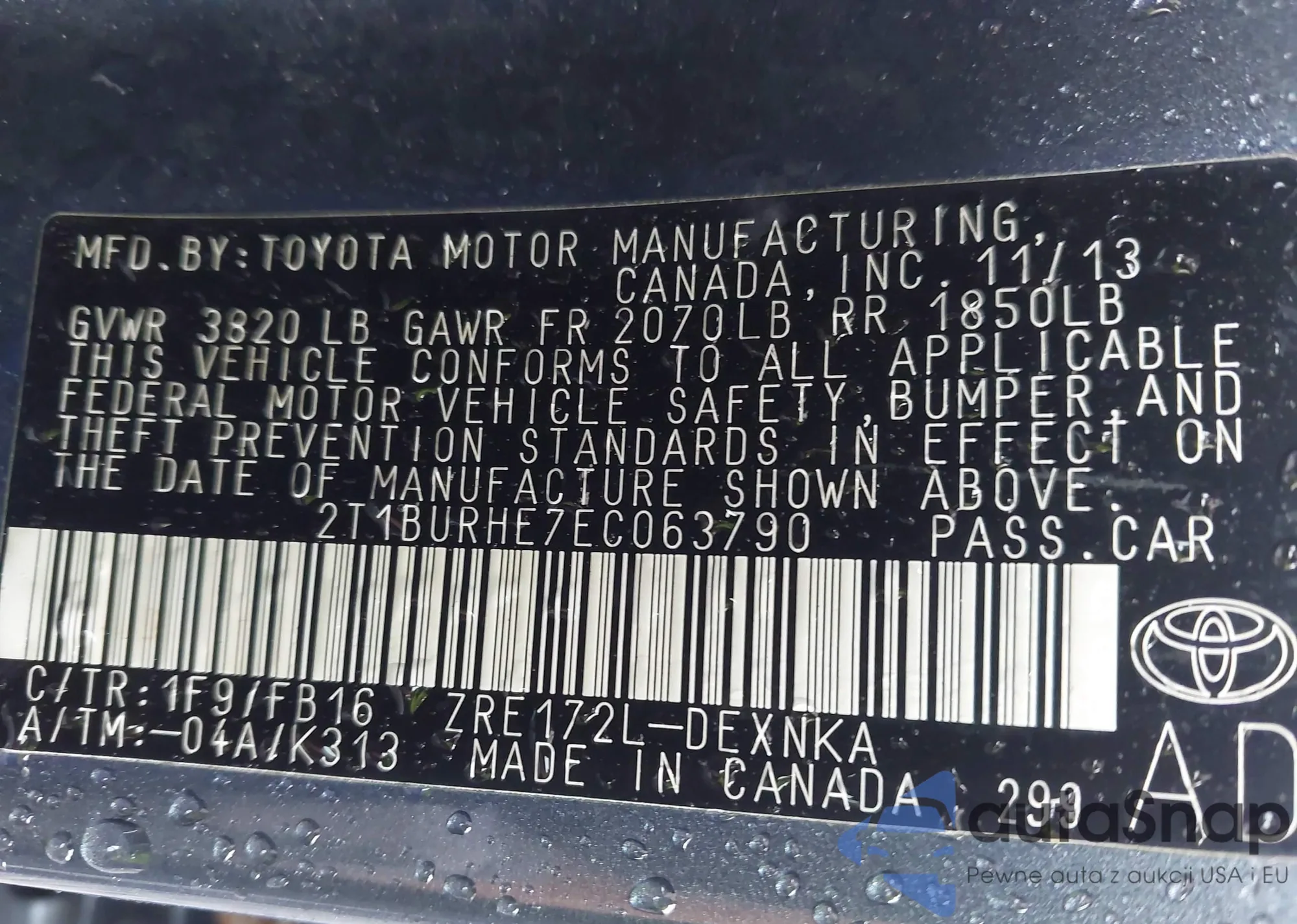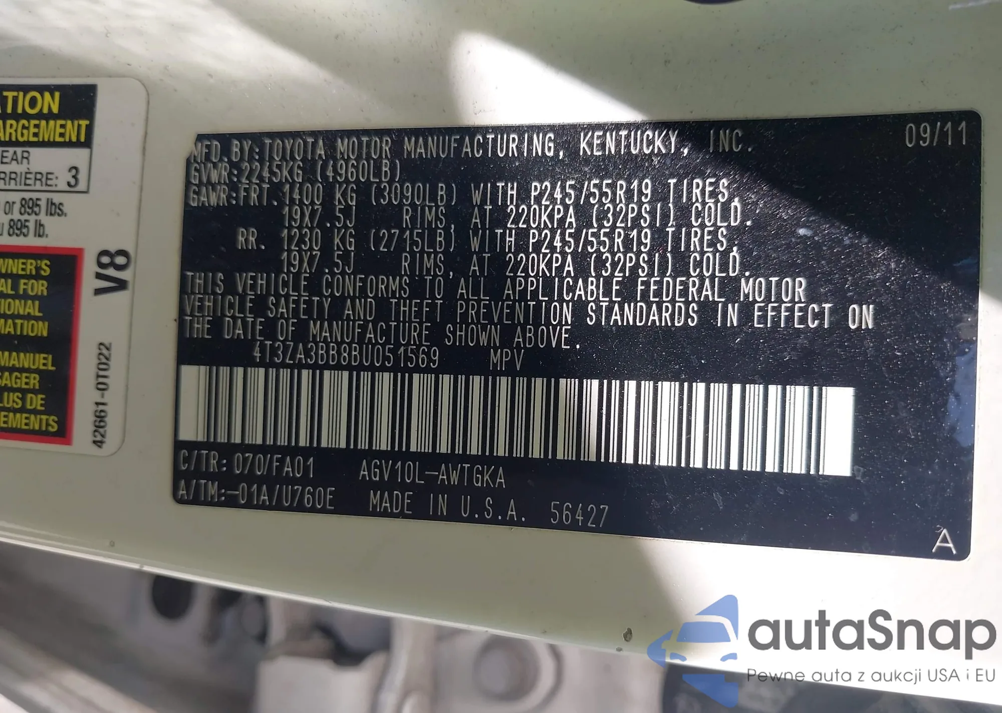 • VIN 4T3ZA3BB8BU051569