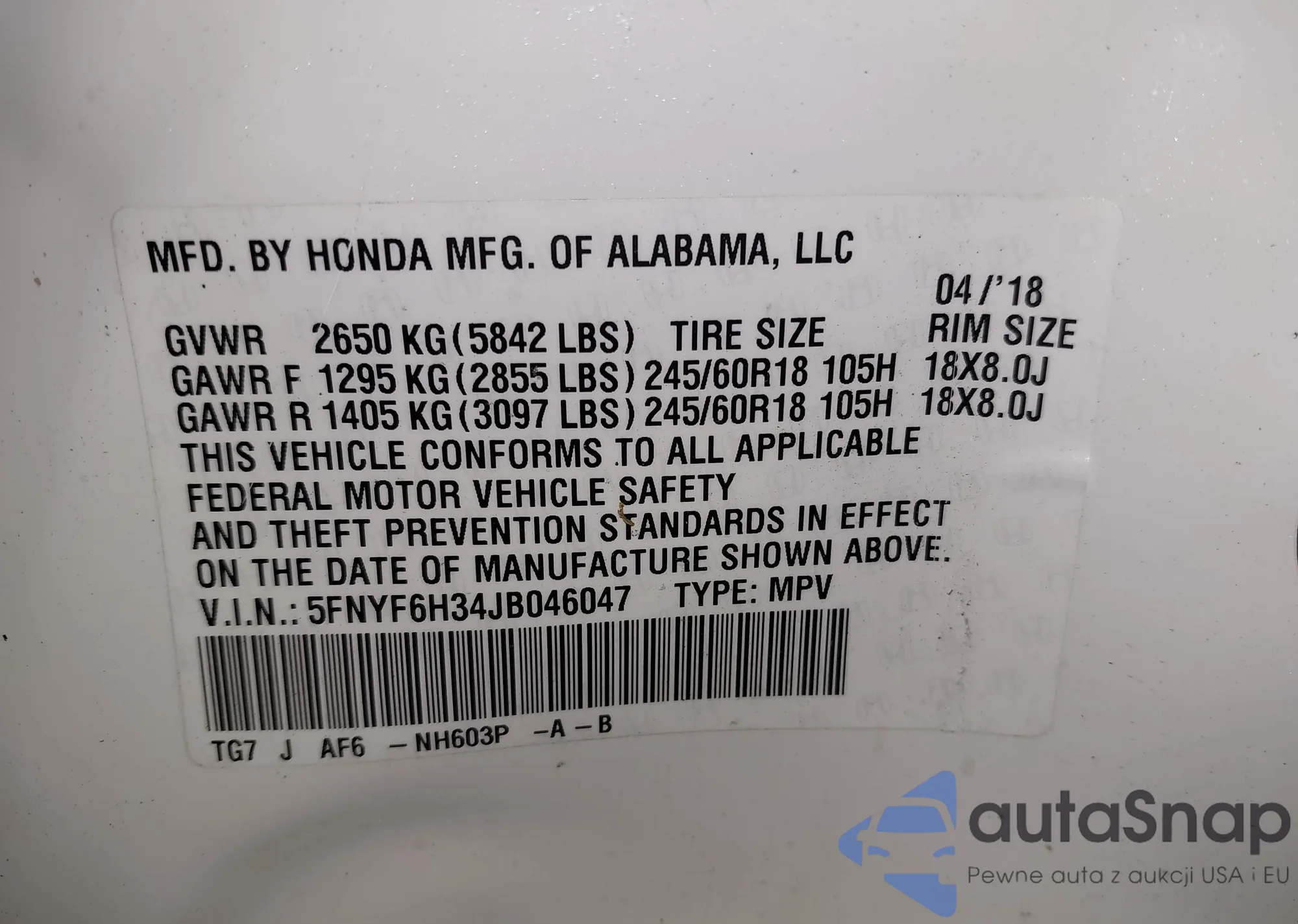 LOT: 42268311 VIN: SALRR2RV8JA076299