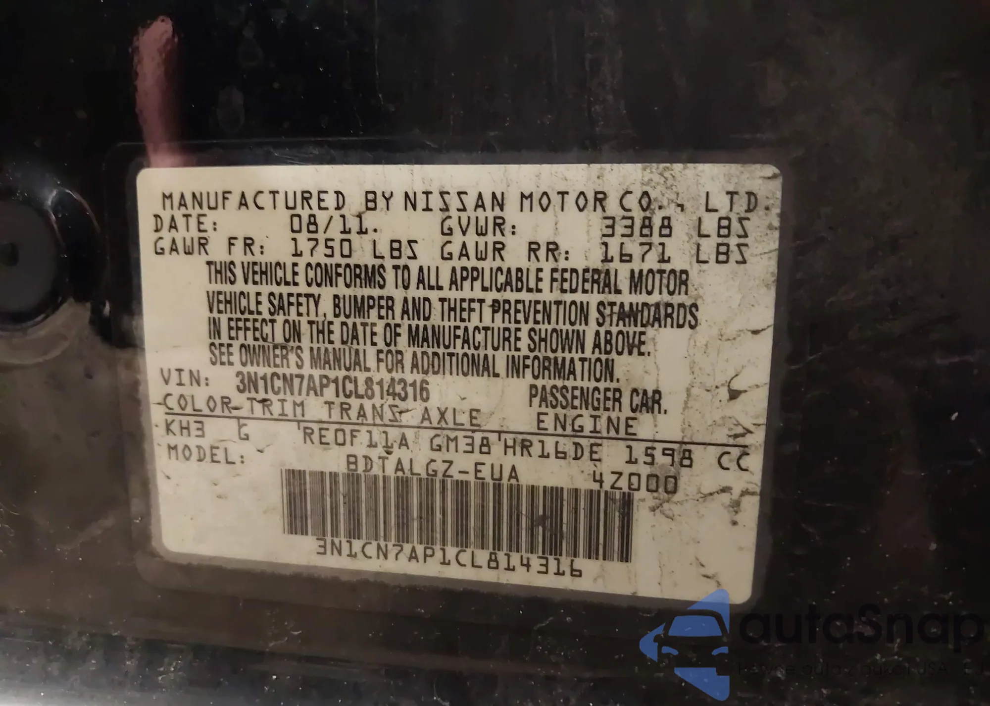 • VIN 3N1CN7AP1CL814316