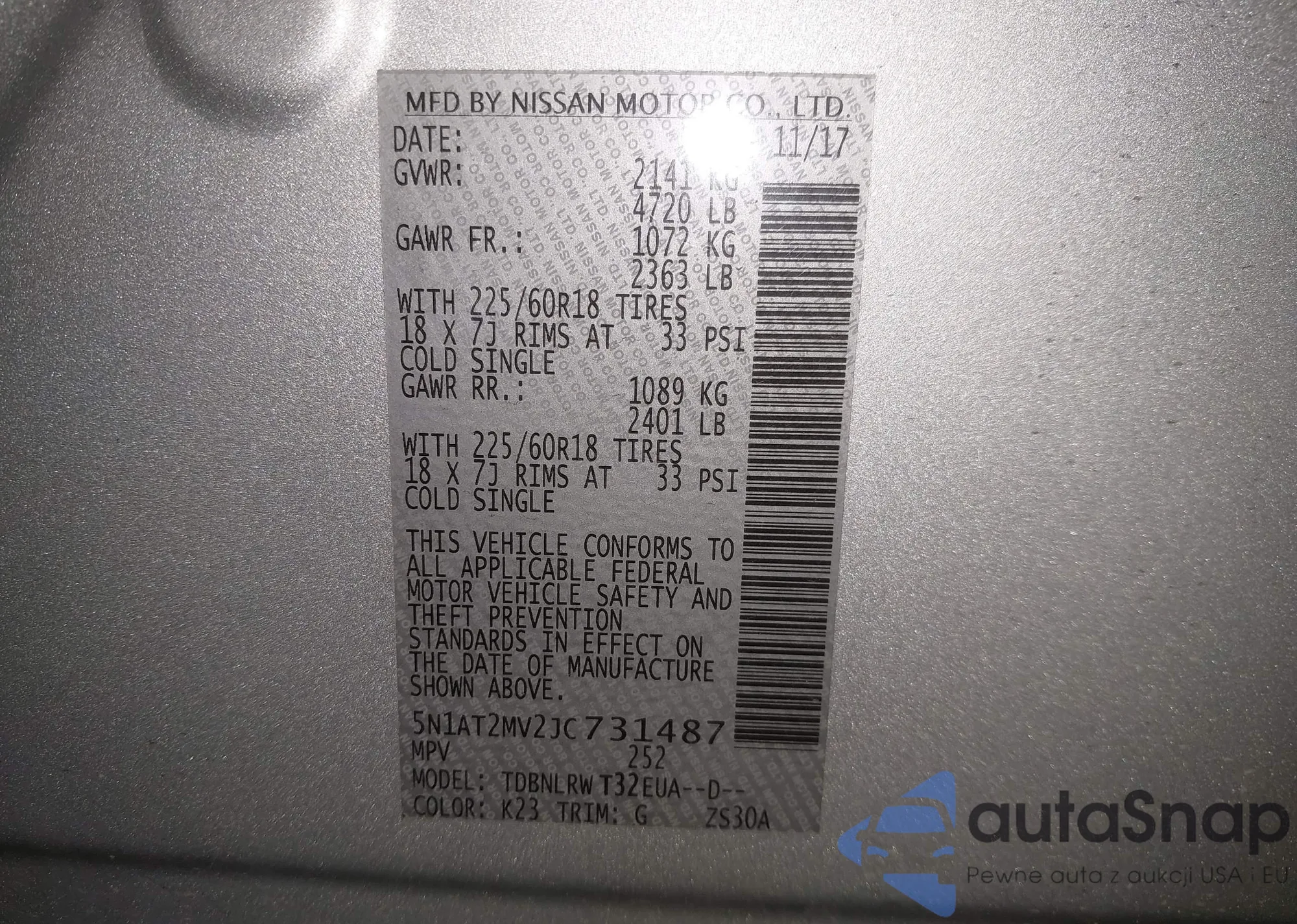 LOT: 42324439 VIN: 5N1AT2MV2JC731487