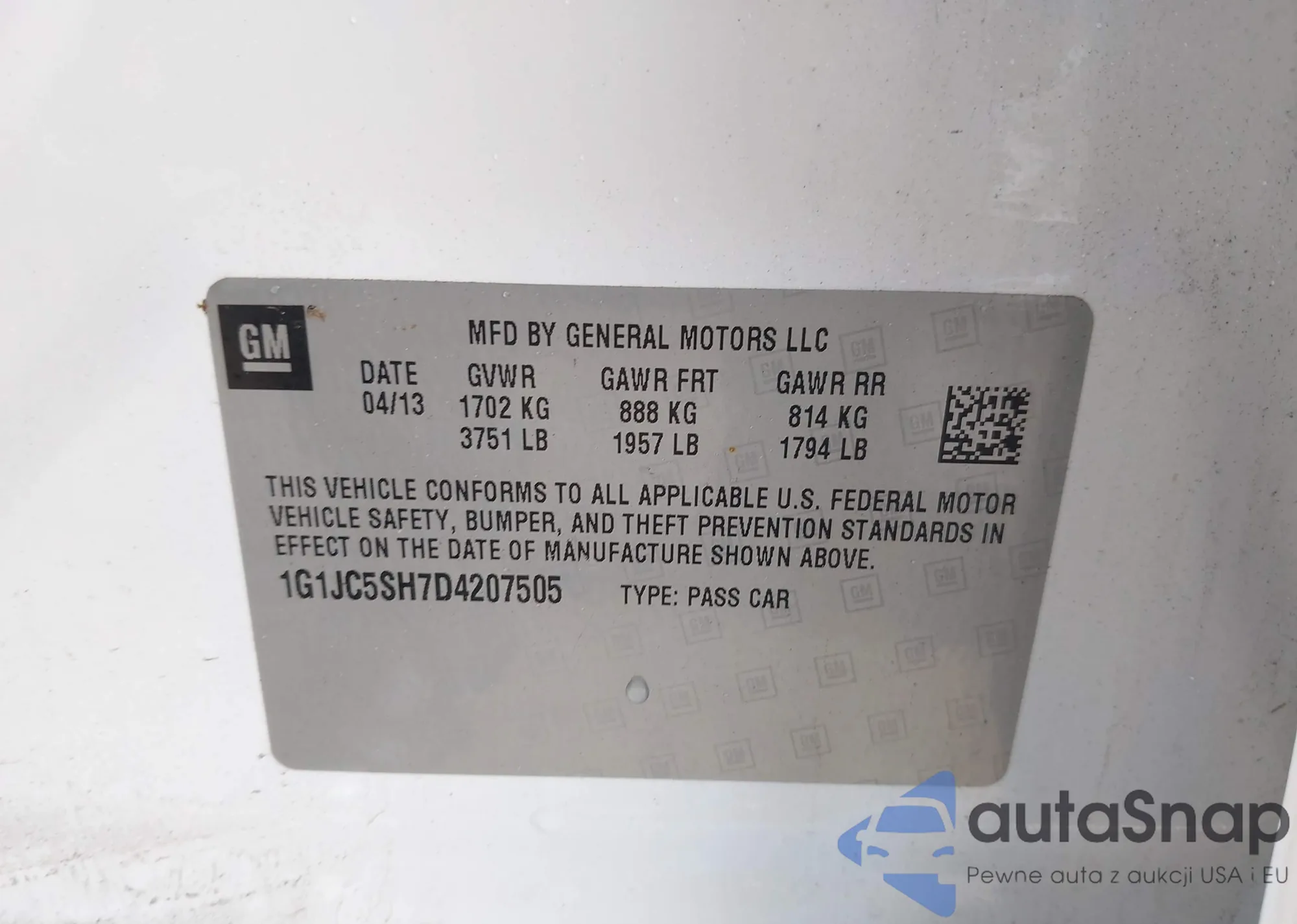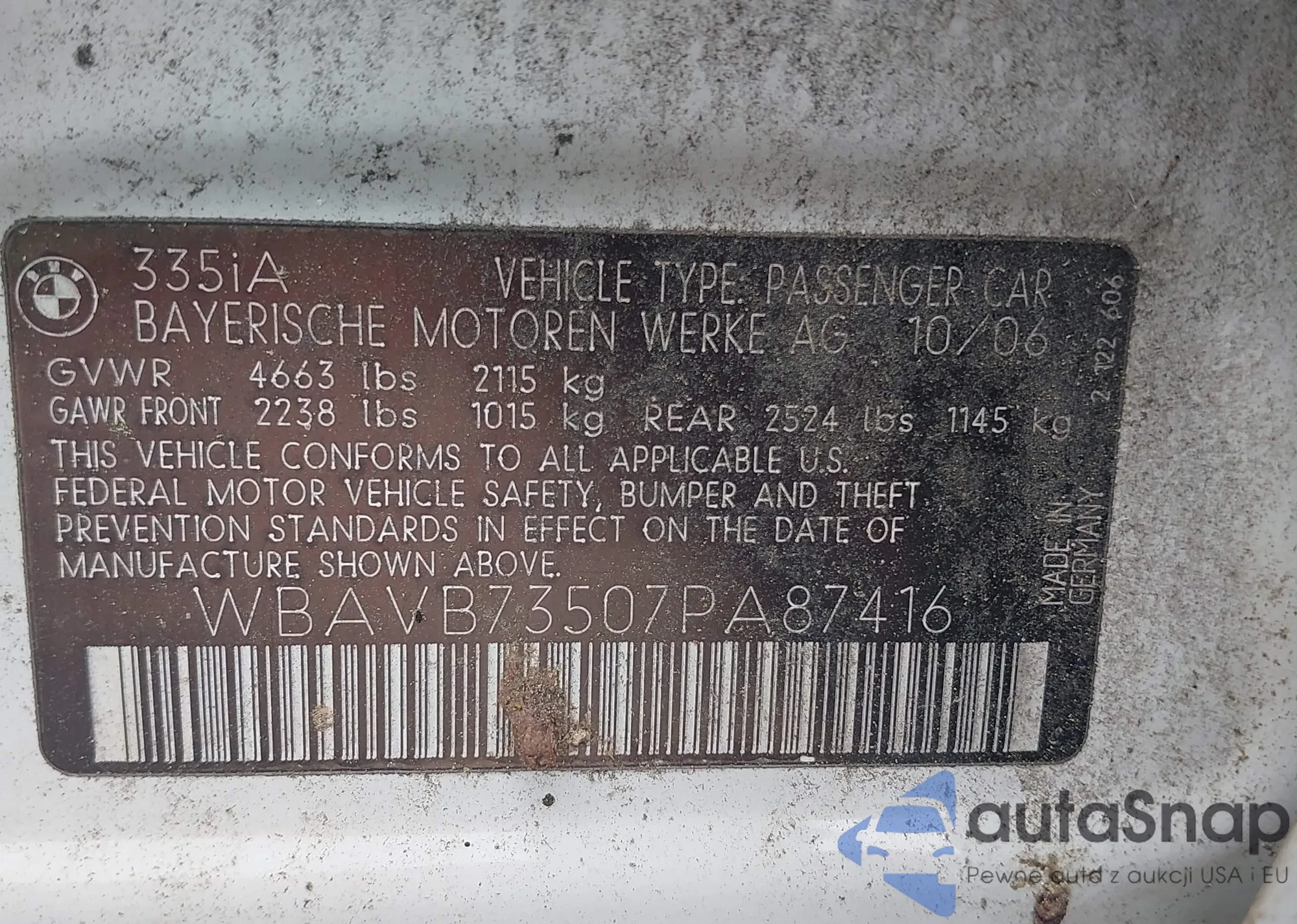 LOT: 42366253 VIN: WBAVB73507PA87416