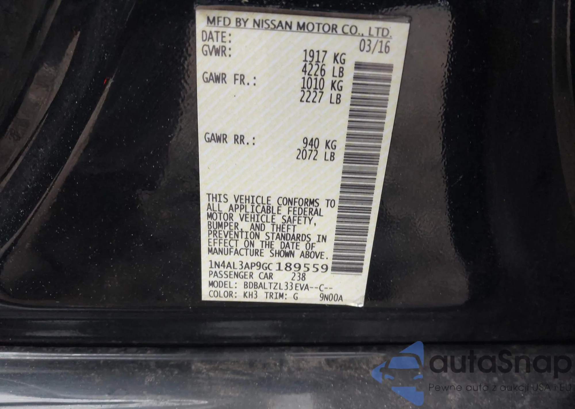 LOT: 42217908 VIN: 1N4AL3AP9GC189559