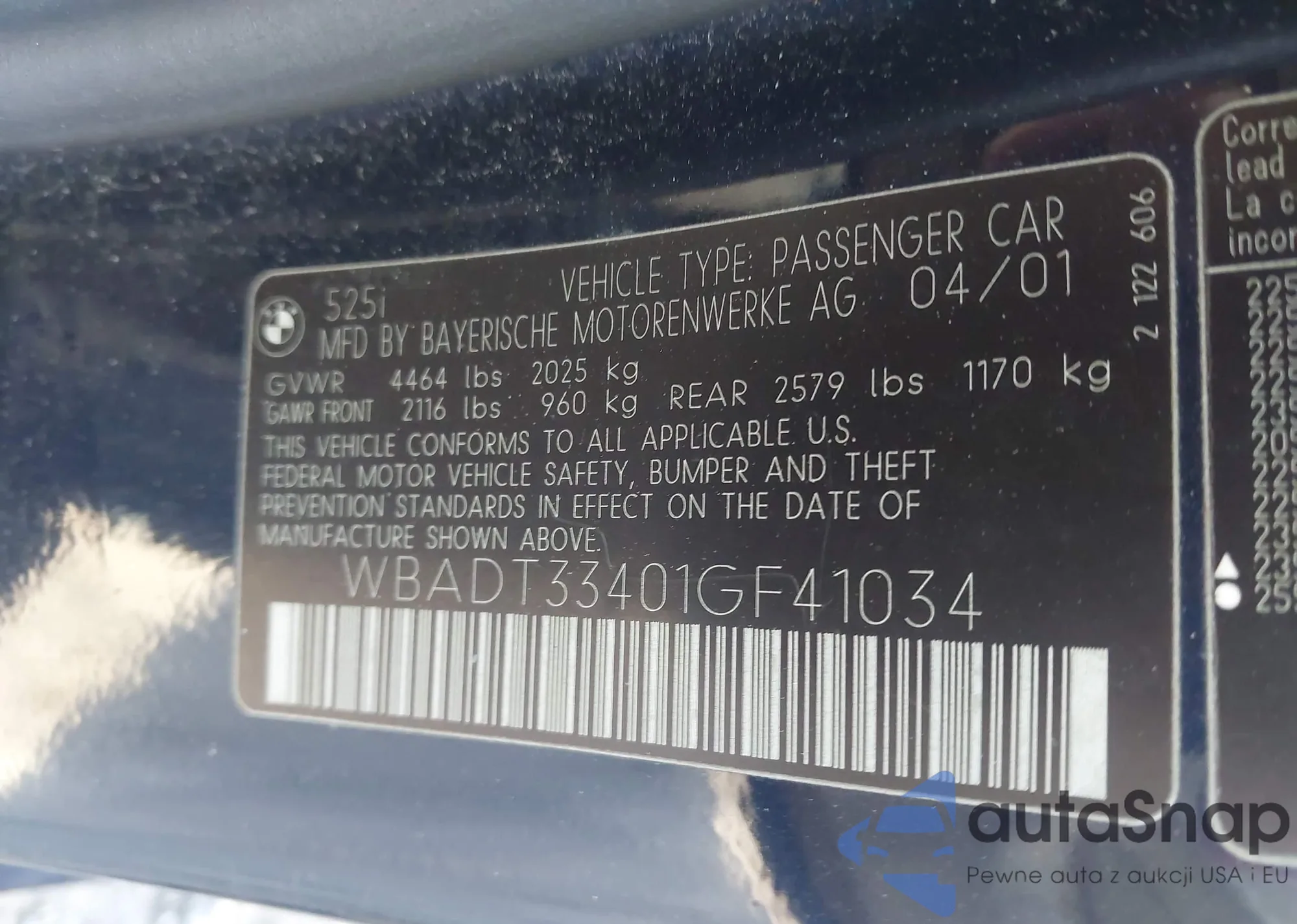 LOT: 42164405 VIN: WBADT33401GF41034