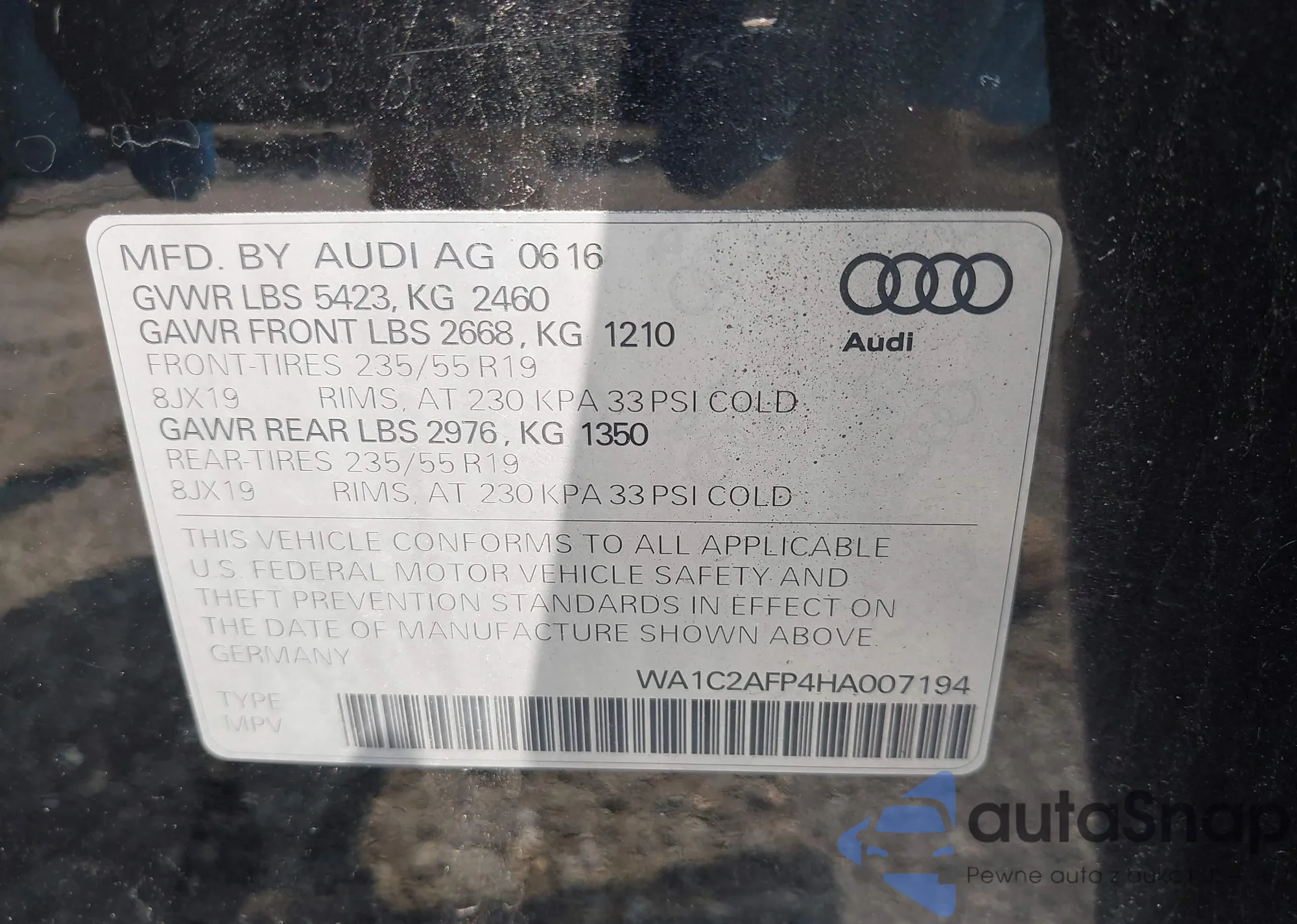 LOT: 42415717 VIN: WA1C2AFP4HA007194