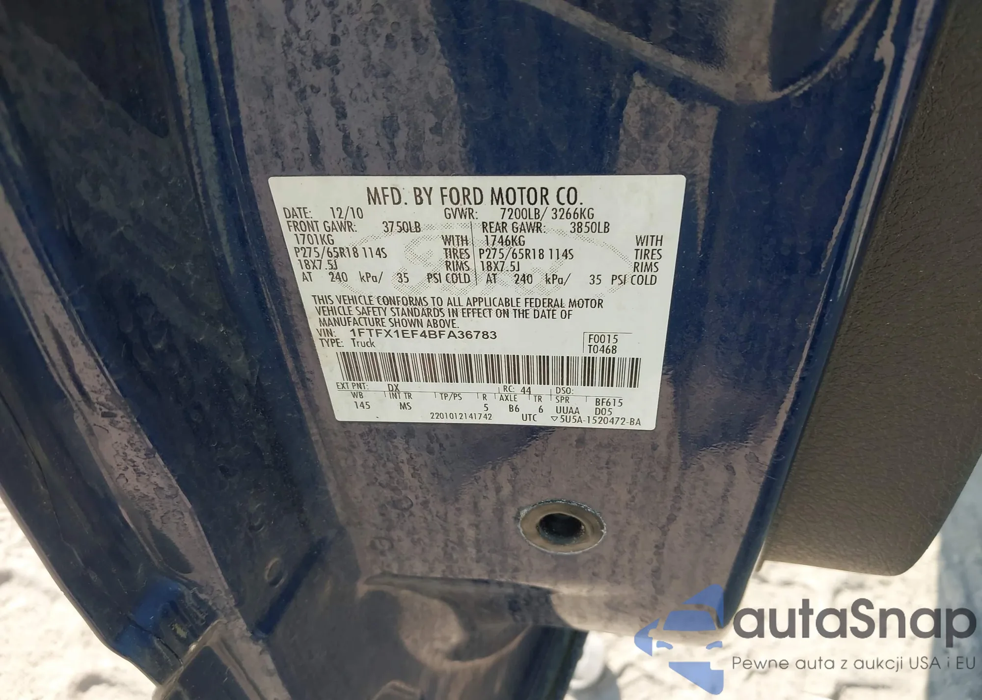 LOT: 42081404 VIN: 1FTRF12278KC57747
