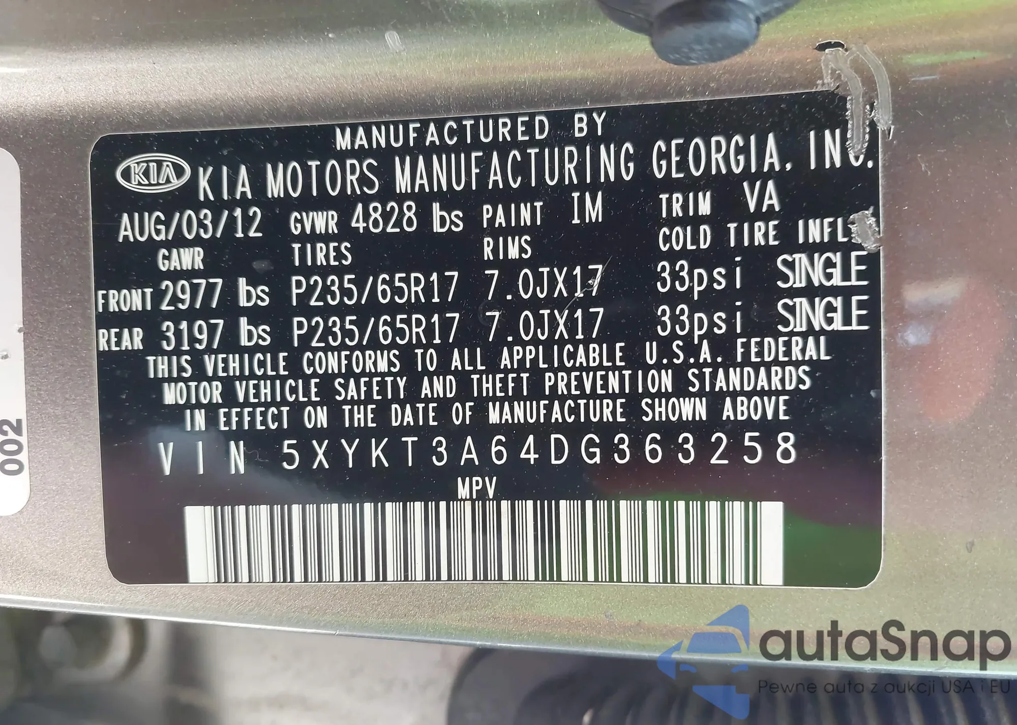 • VIN 5XYKTCA67FG655165