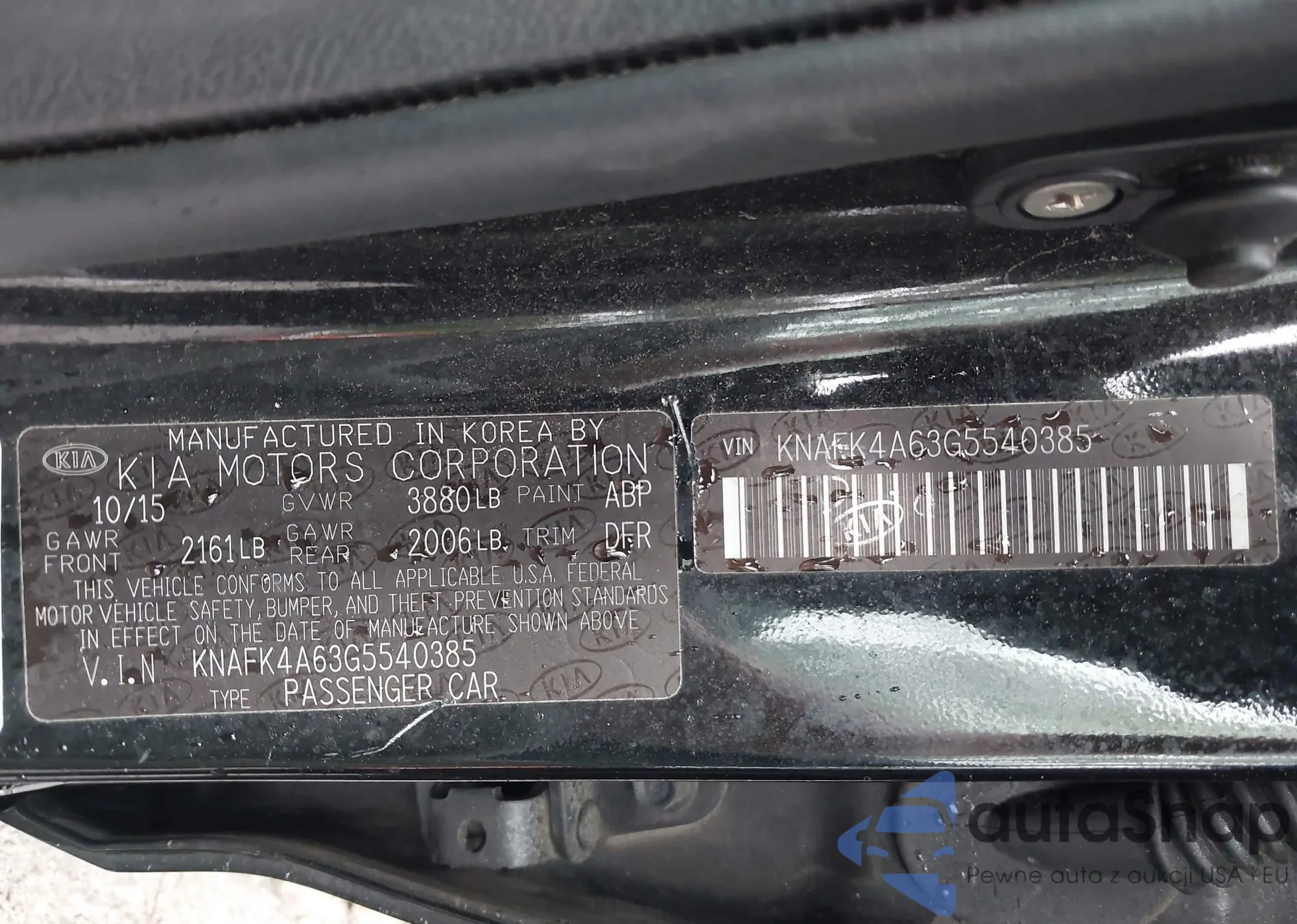 LOT: 42356746 VIN: KNAFK4A63G5540385