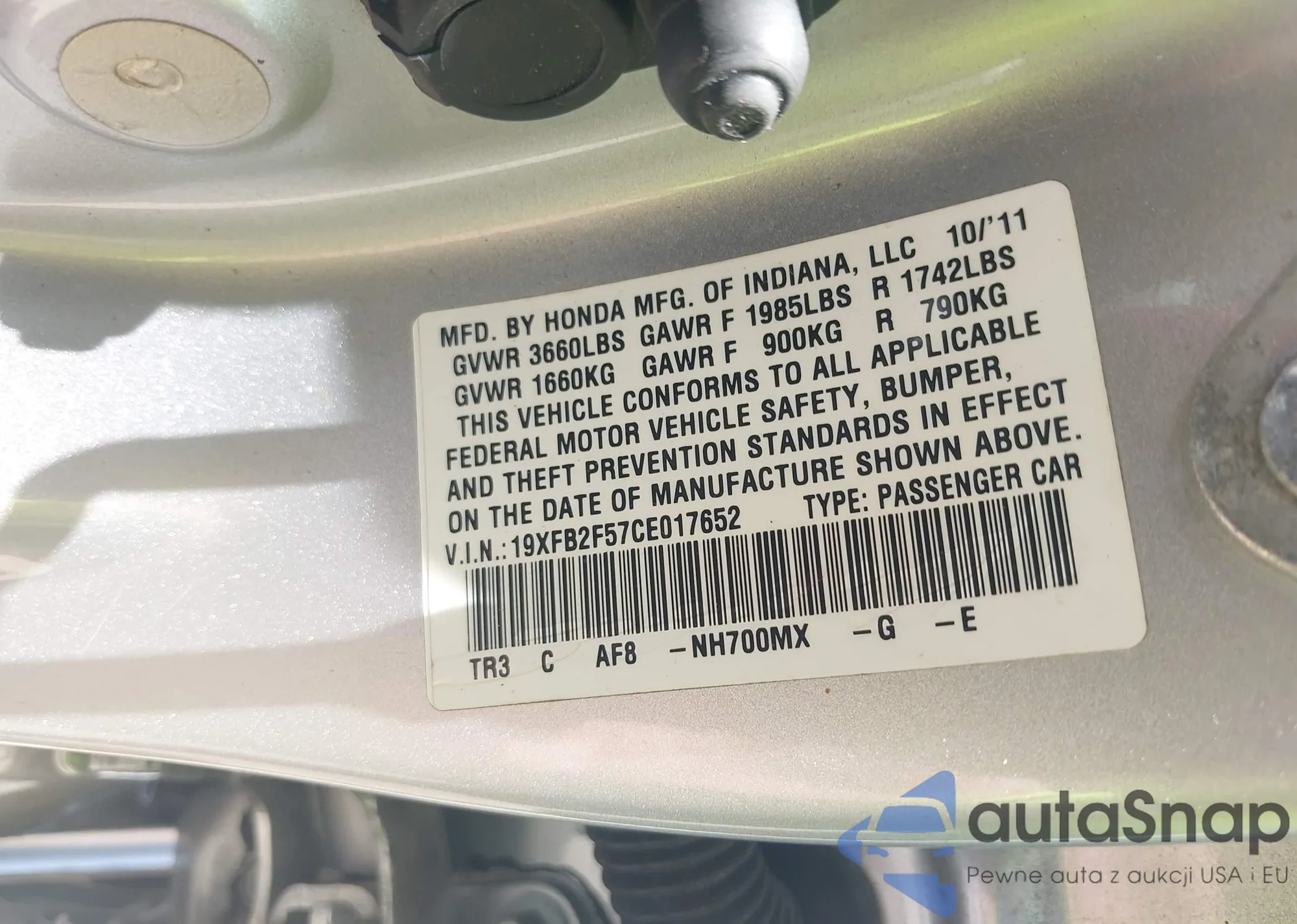 • VIN 19XFB2F57CE017652