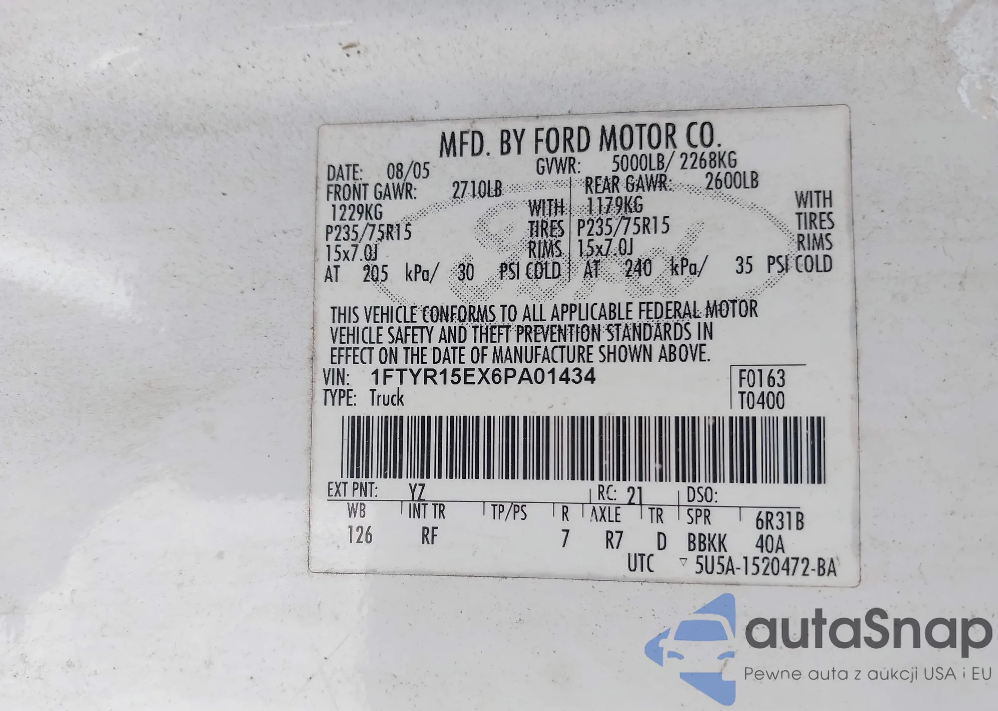 LOT: 42338198 VIN: WMWRF33538TF68199