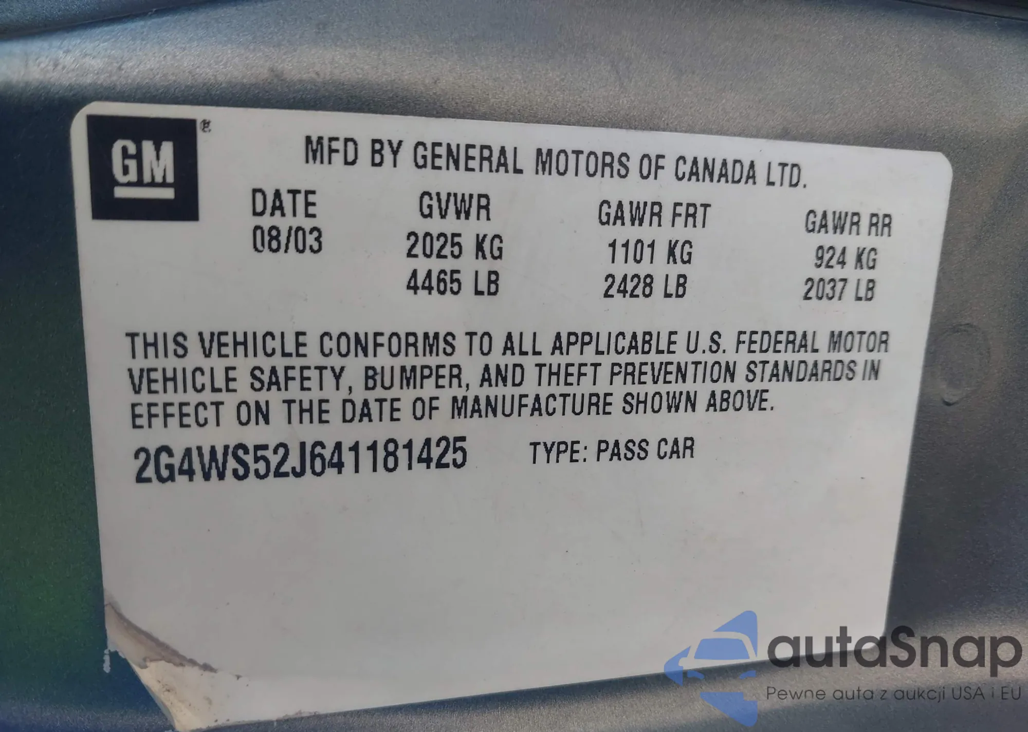LOT: 42308125 VIN: 2G4WS52J641181425