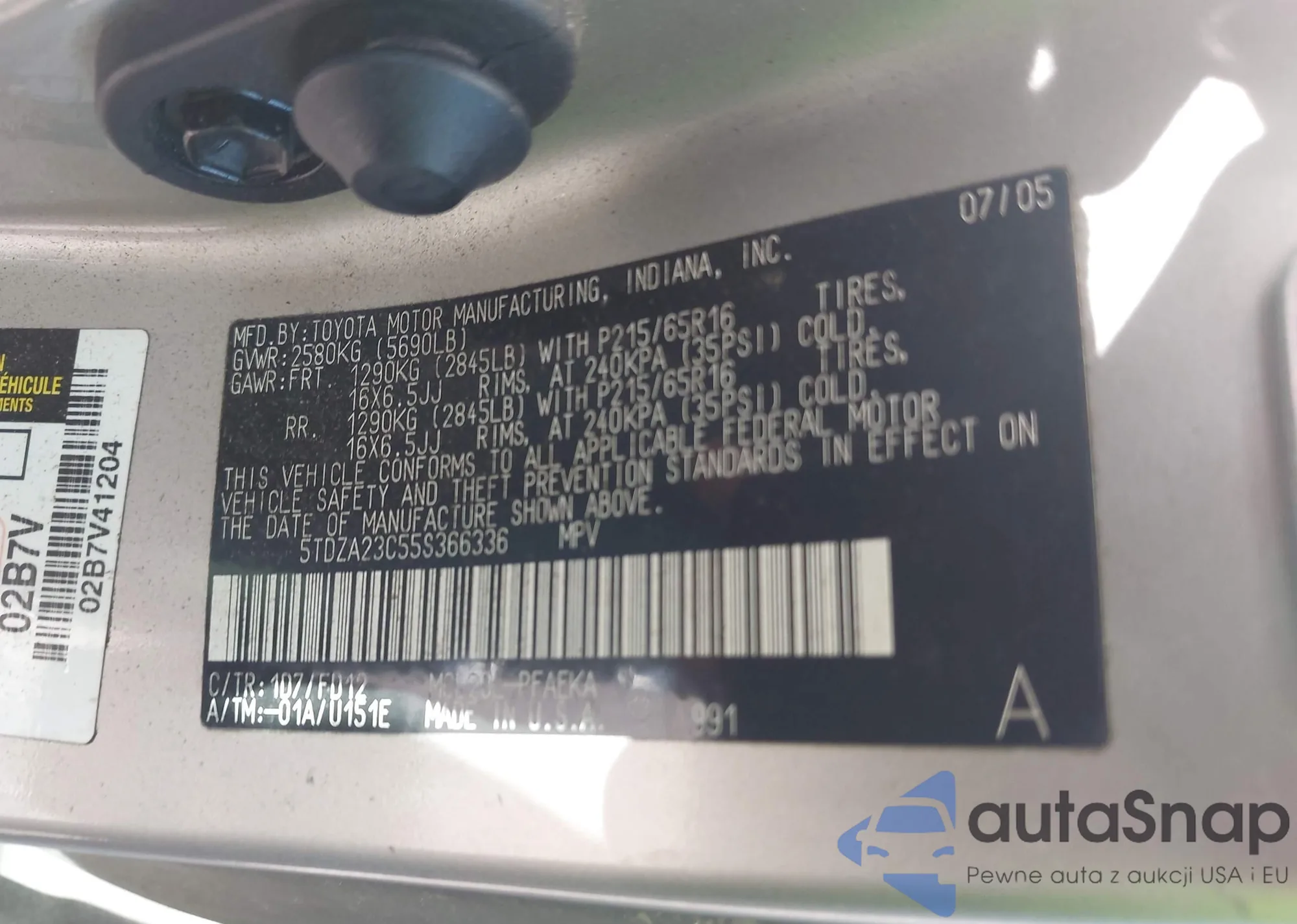 LOT: 42521791 VIN: 5TDZA23C55S366336