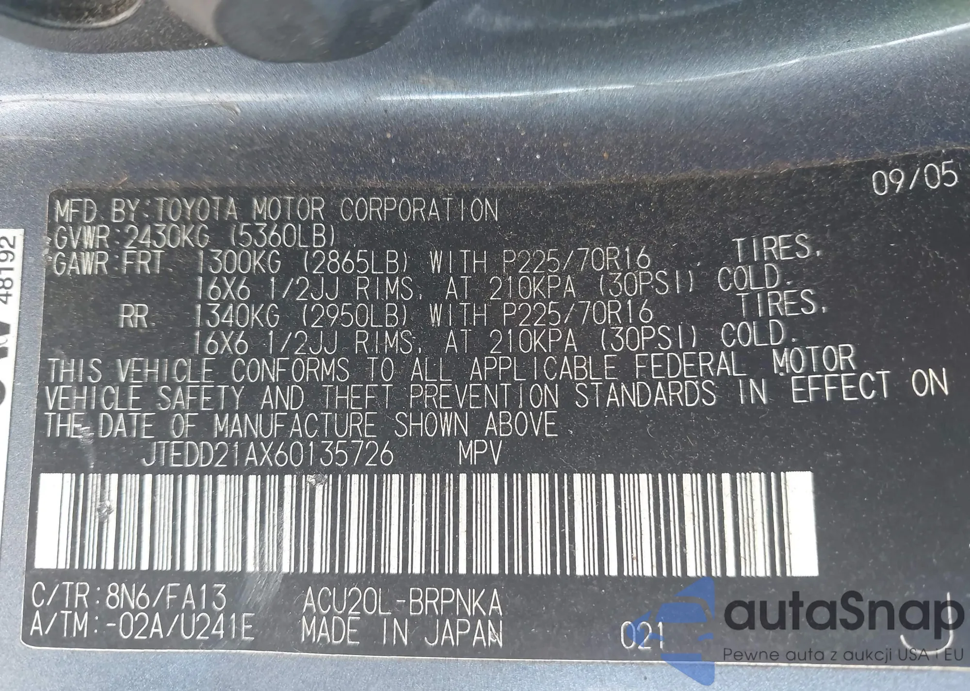 • VIN JTEDD21AX60135726