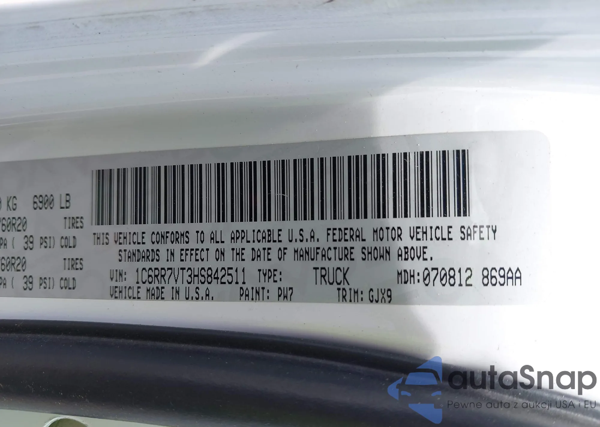 • VIN 1C6RR7VT3HS842511