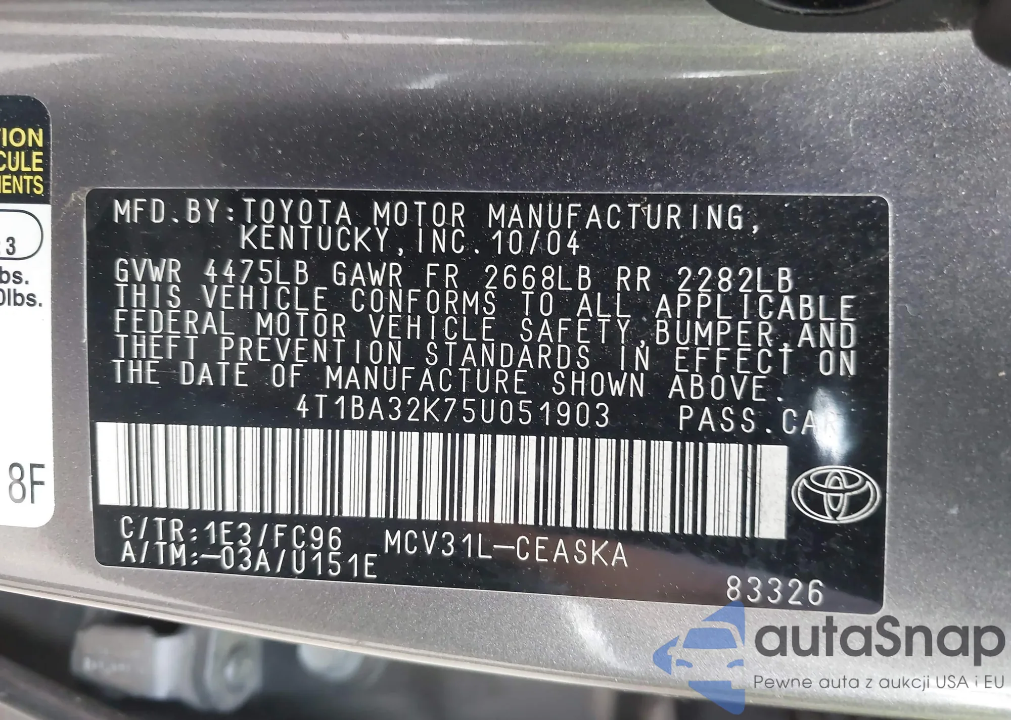 • VIN 4T1BA32K75U051903