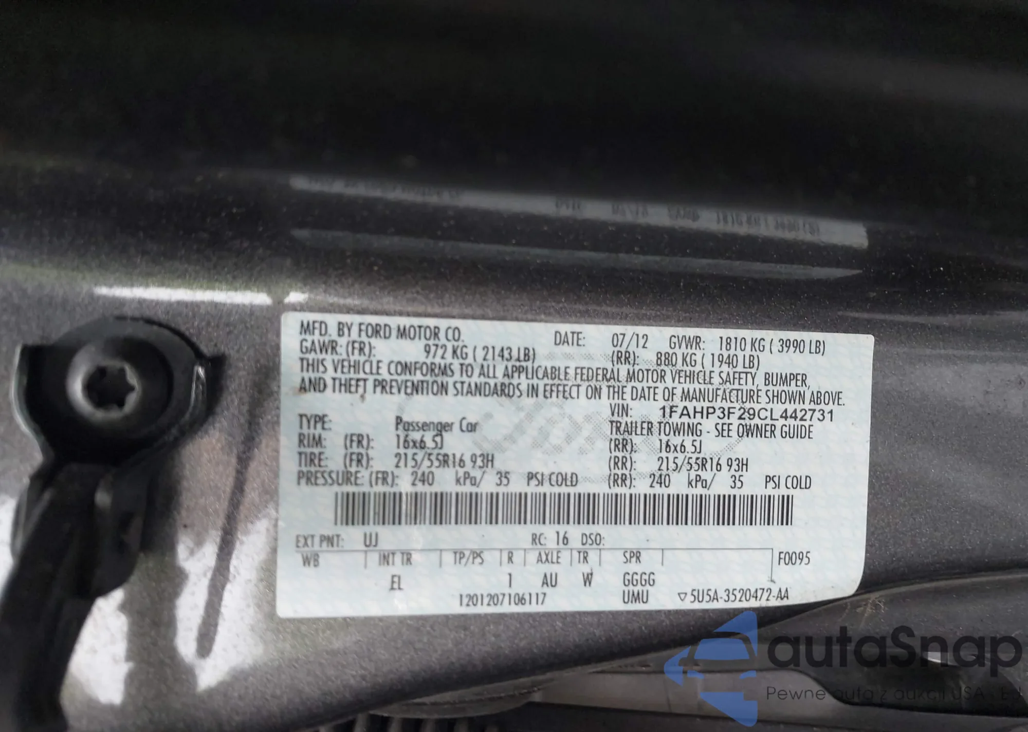 • VIN 1FAHP3F29CL442731