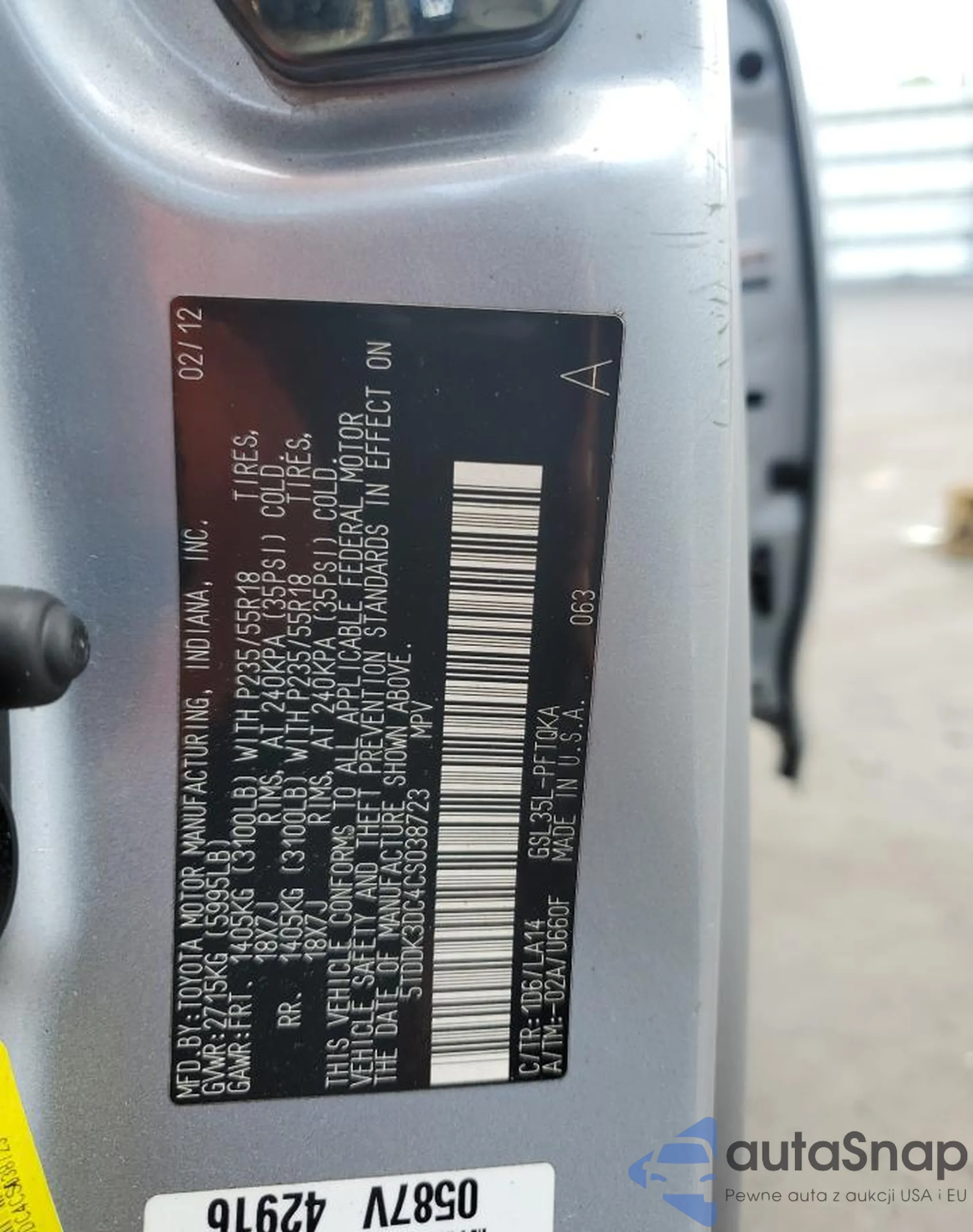 LOT: 61858465 VIN: 5TDDK3DC4CS038723