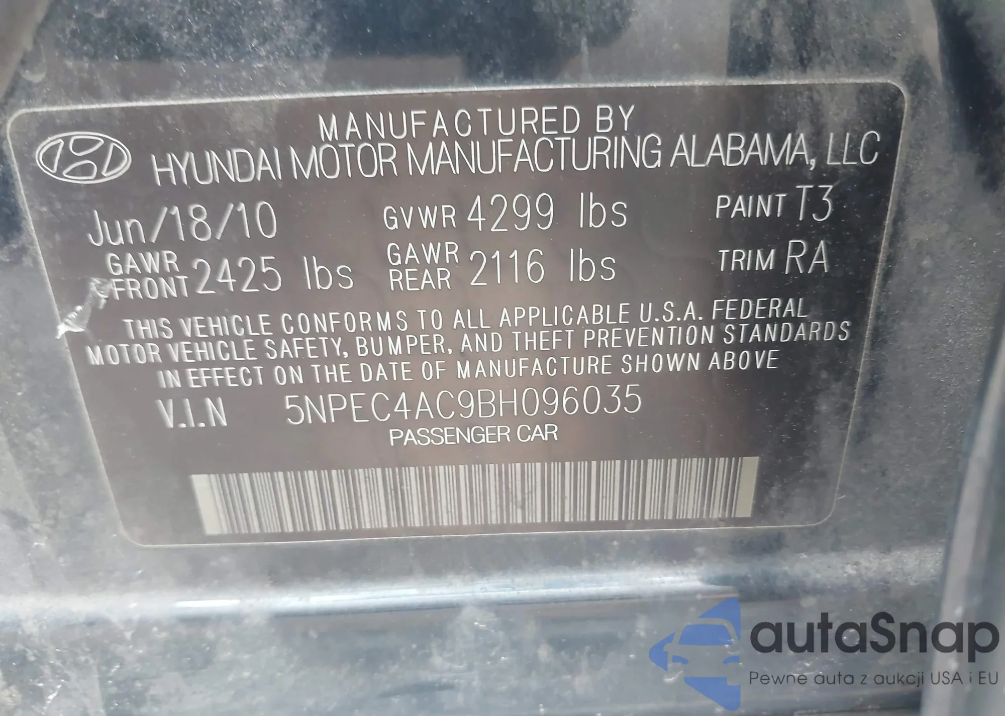 • VIN 5NPEC4AC9BH096035