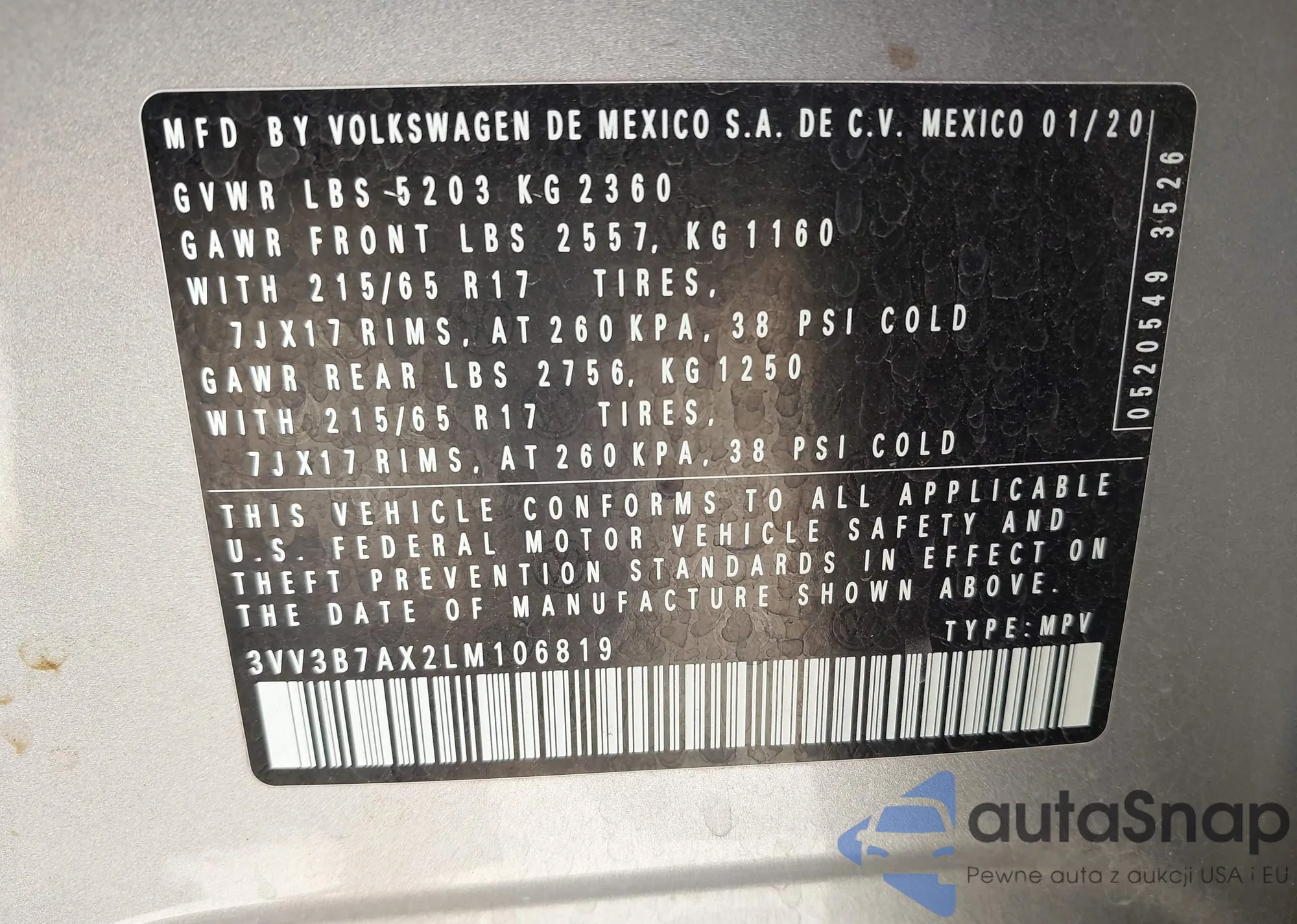 • VIN 3VV3B7AX2LM106819