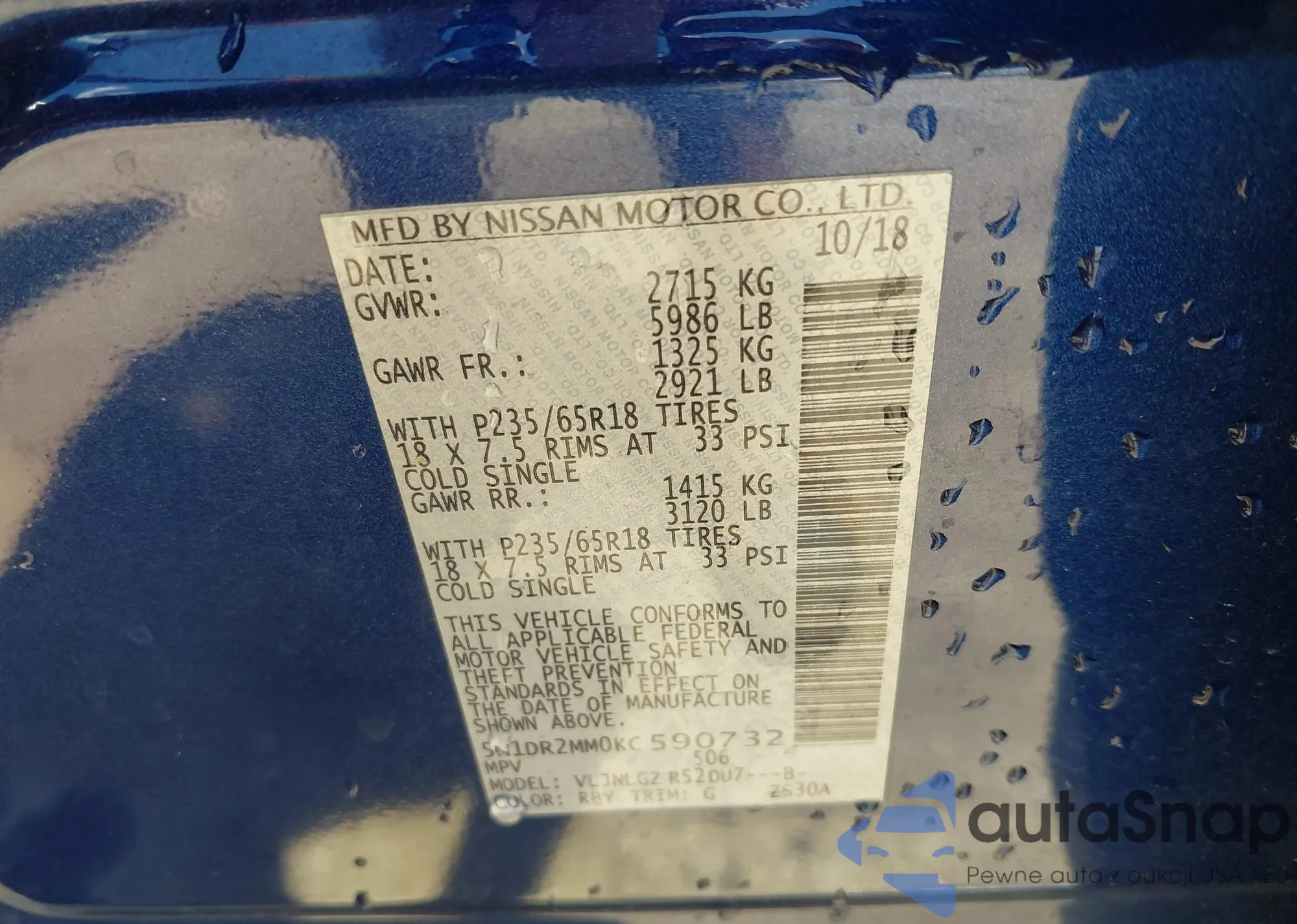 • VIN 5N1DR2MM0KC590732